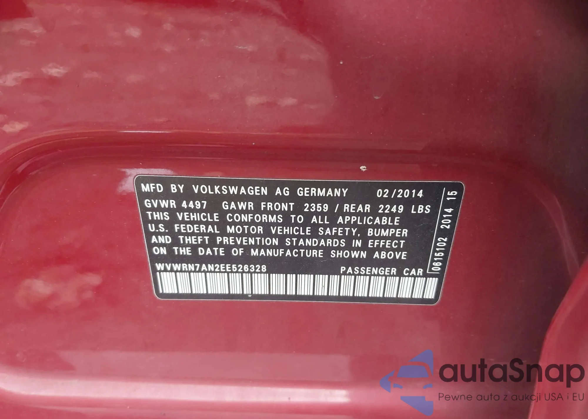 • VIN WAUH3AFC8JN011489