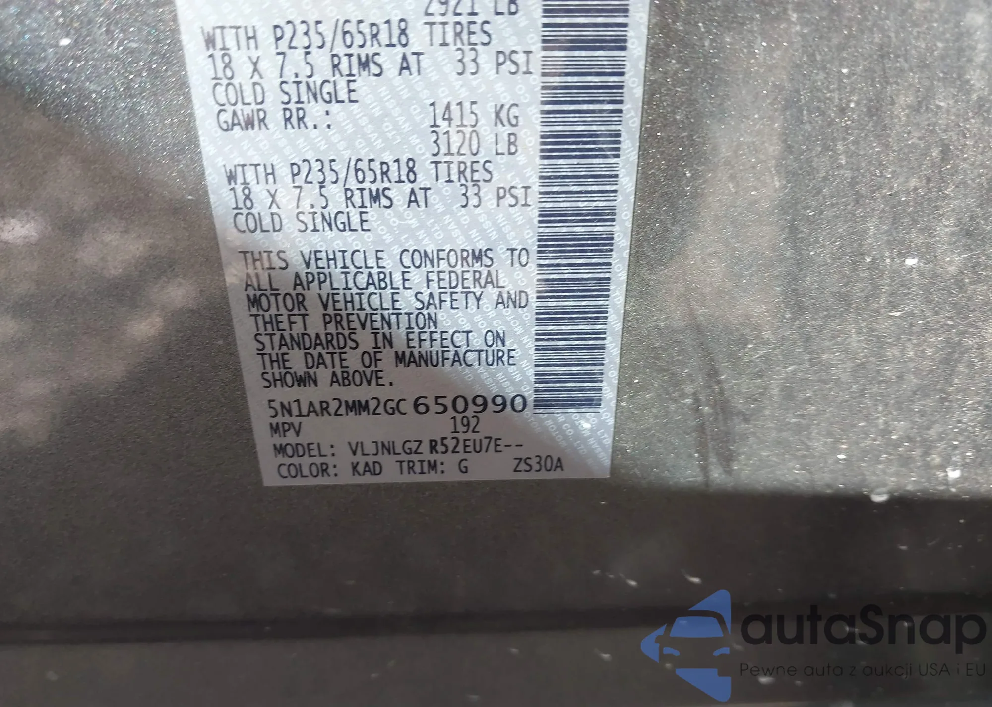 • VIN 5N1AR2MM2GC650990