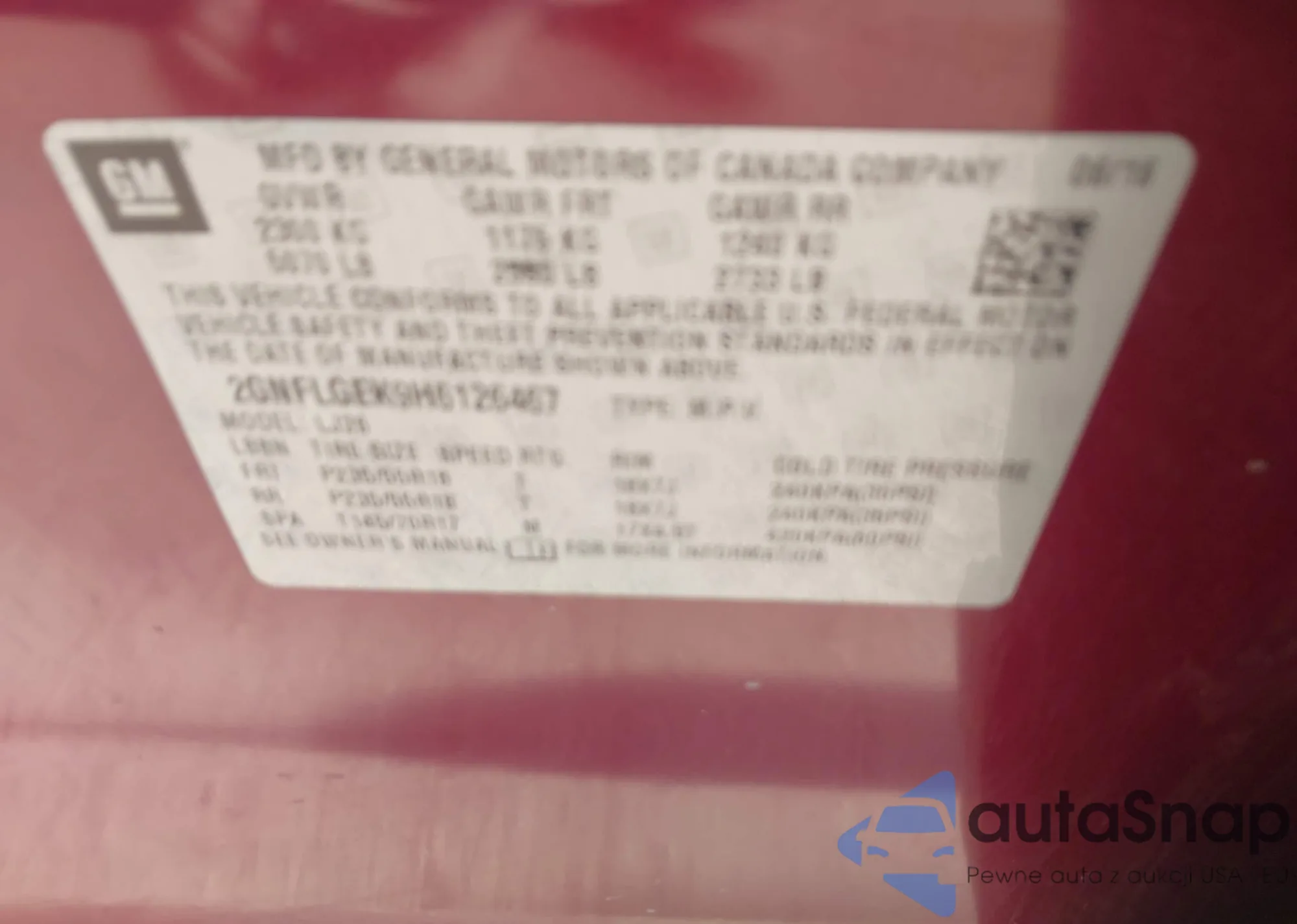 • VIN 2GNFLGEK9H6126467