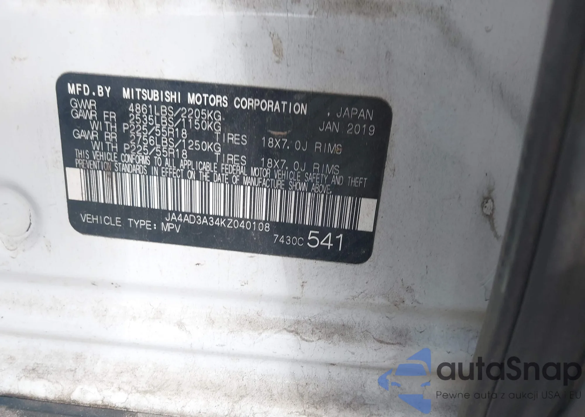 • VIN JA4AD3A34KZ040108