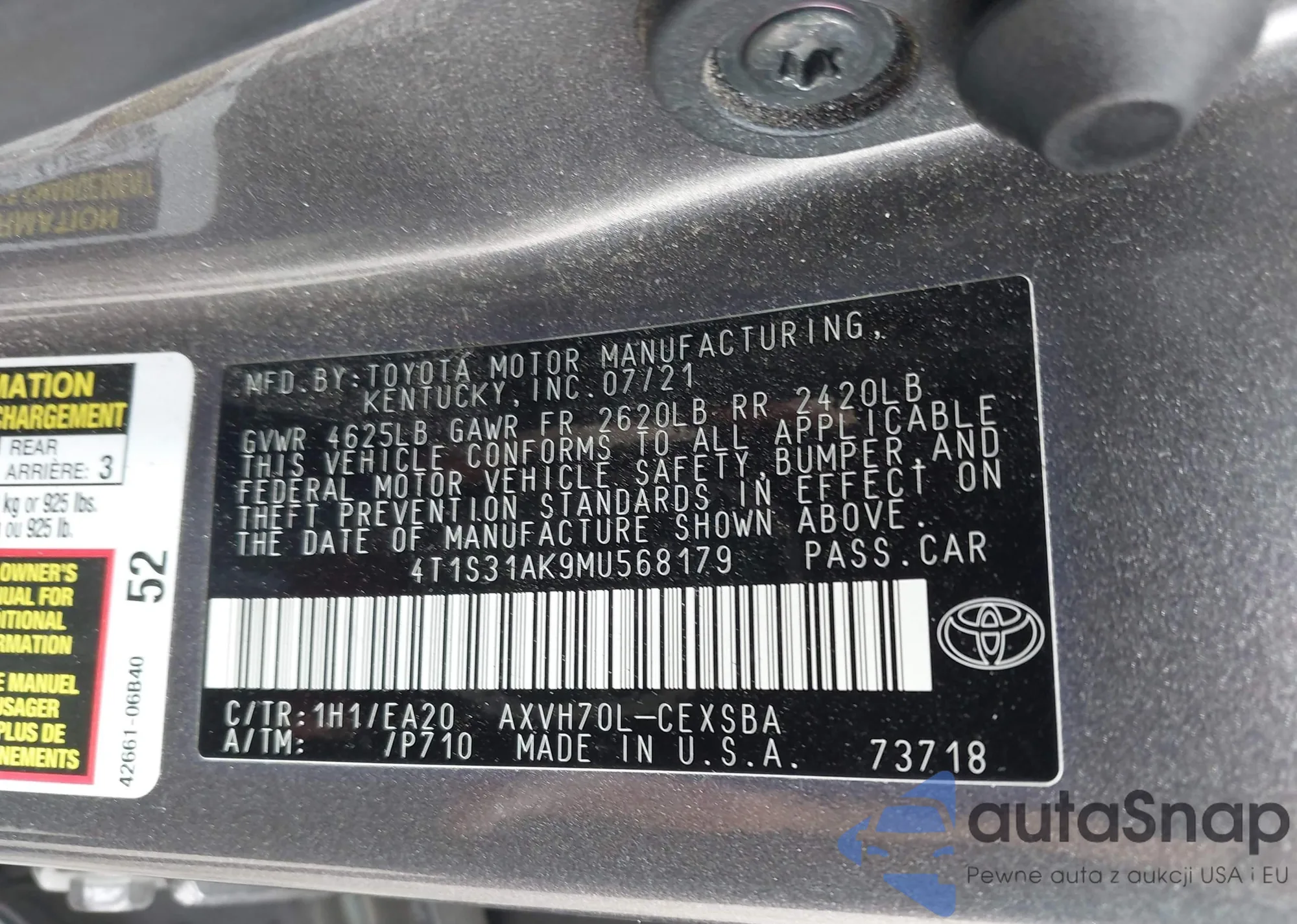 LOT: 43291674 VIN: 4T1S31AK9MU568179
