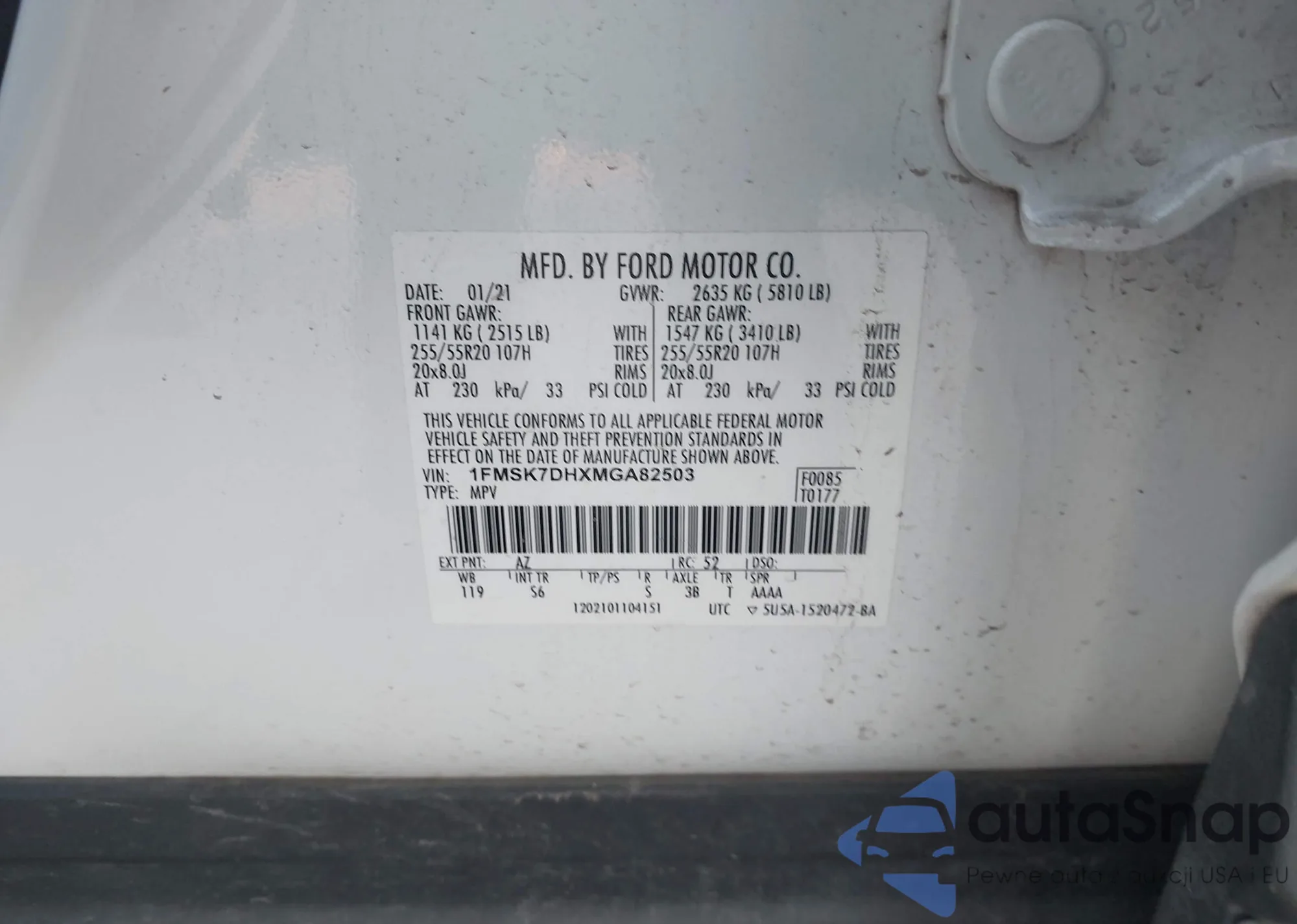 • VIN 1FMSK7DHXMGA82503