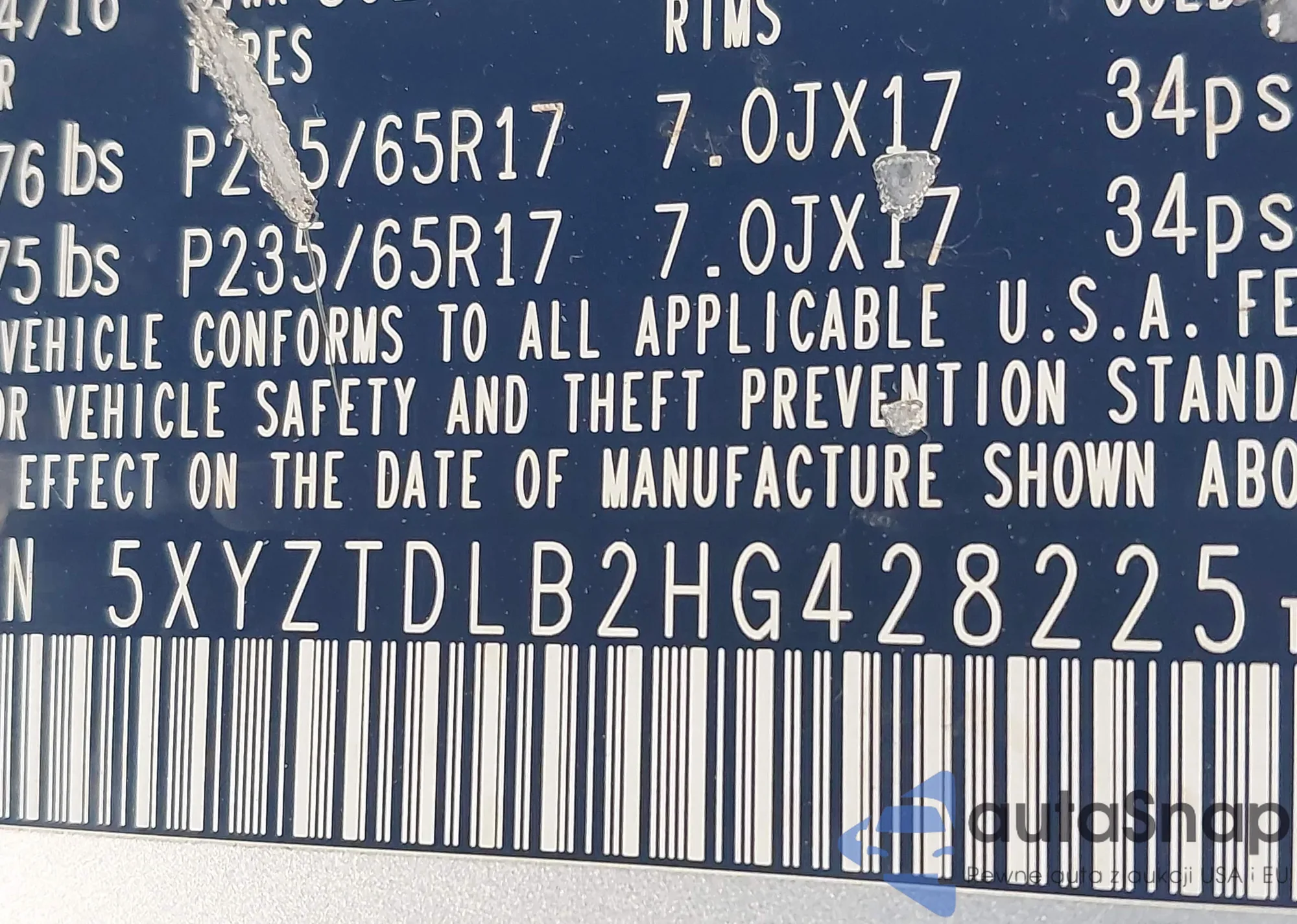 LOT: 43538574 VIN: 5XYZTDLB2HG428225