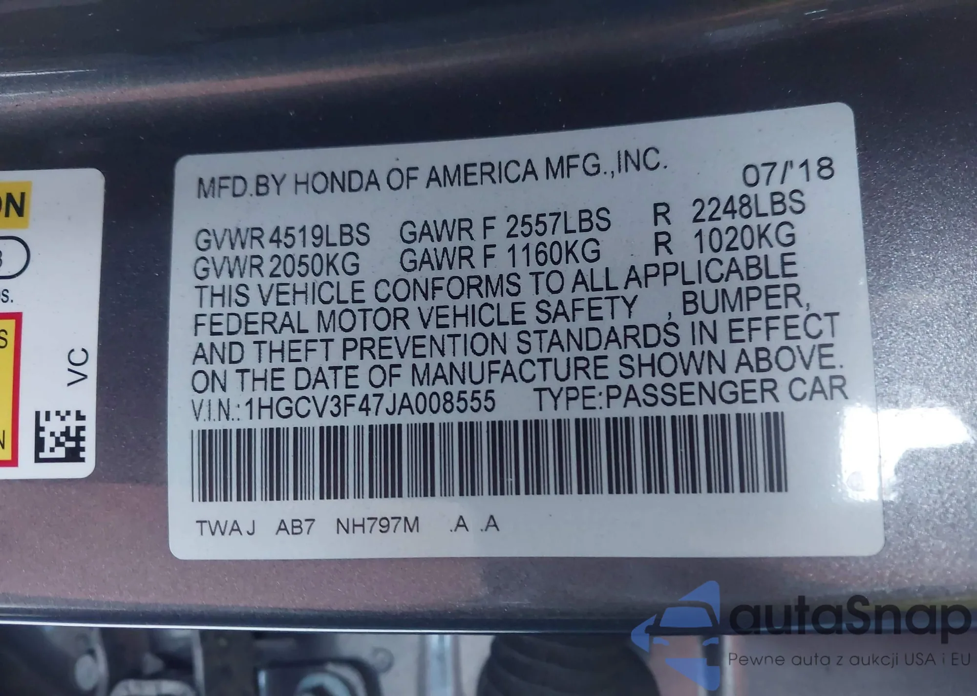 • VIN 1HGCV3F47JA008555