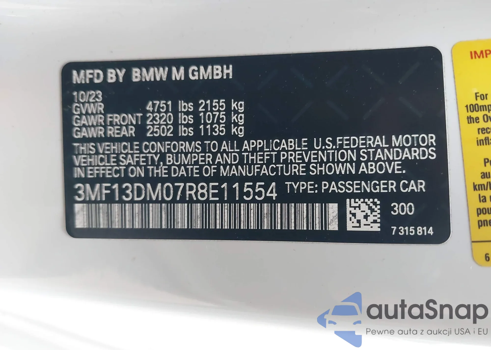 2024 BMW M2 z USA, uszkodzony, nr VIN 3MF13DM07R8E11554