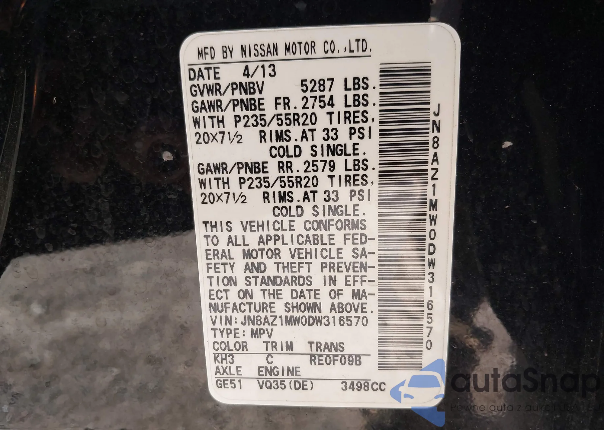 LOT: 43418706 VIN: JN1BJ1BW5MW439343