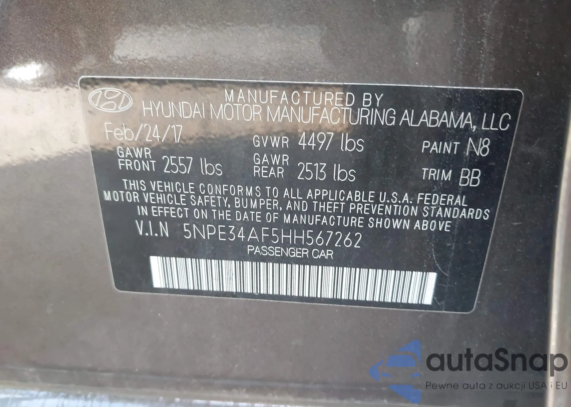 • VIN 5XYZWDLA9JG546891