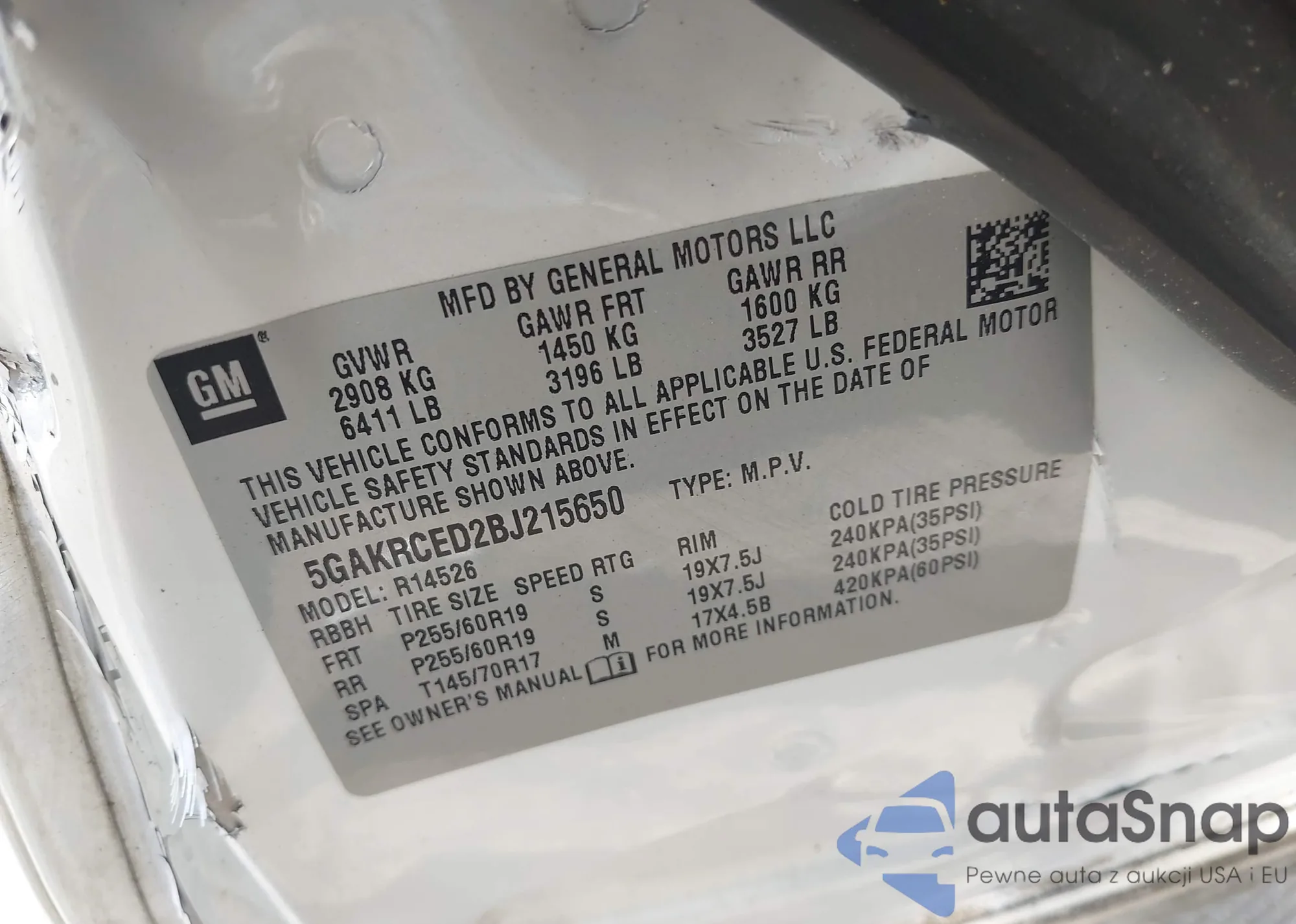 • VIN 5GAKRCED2BJ215650