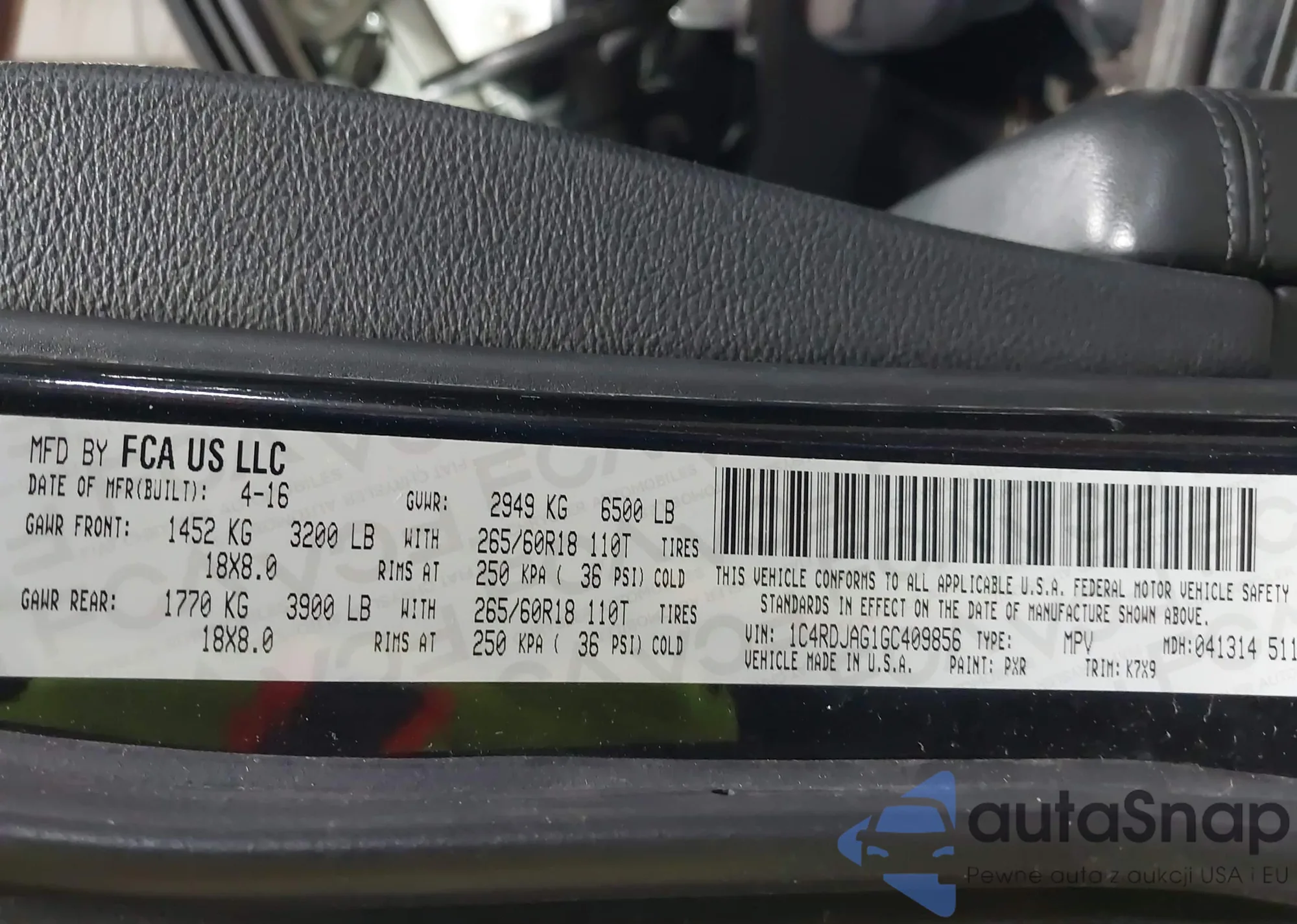 • VIN 1C4RDJAG1GC409856