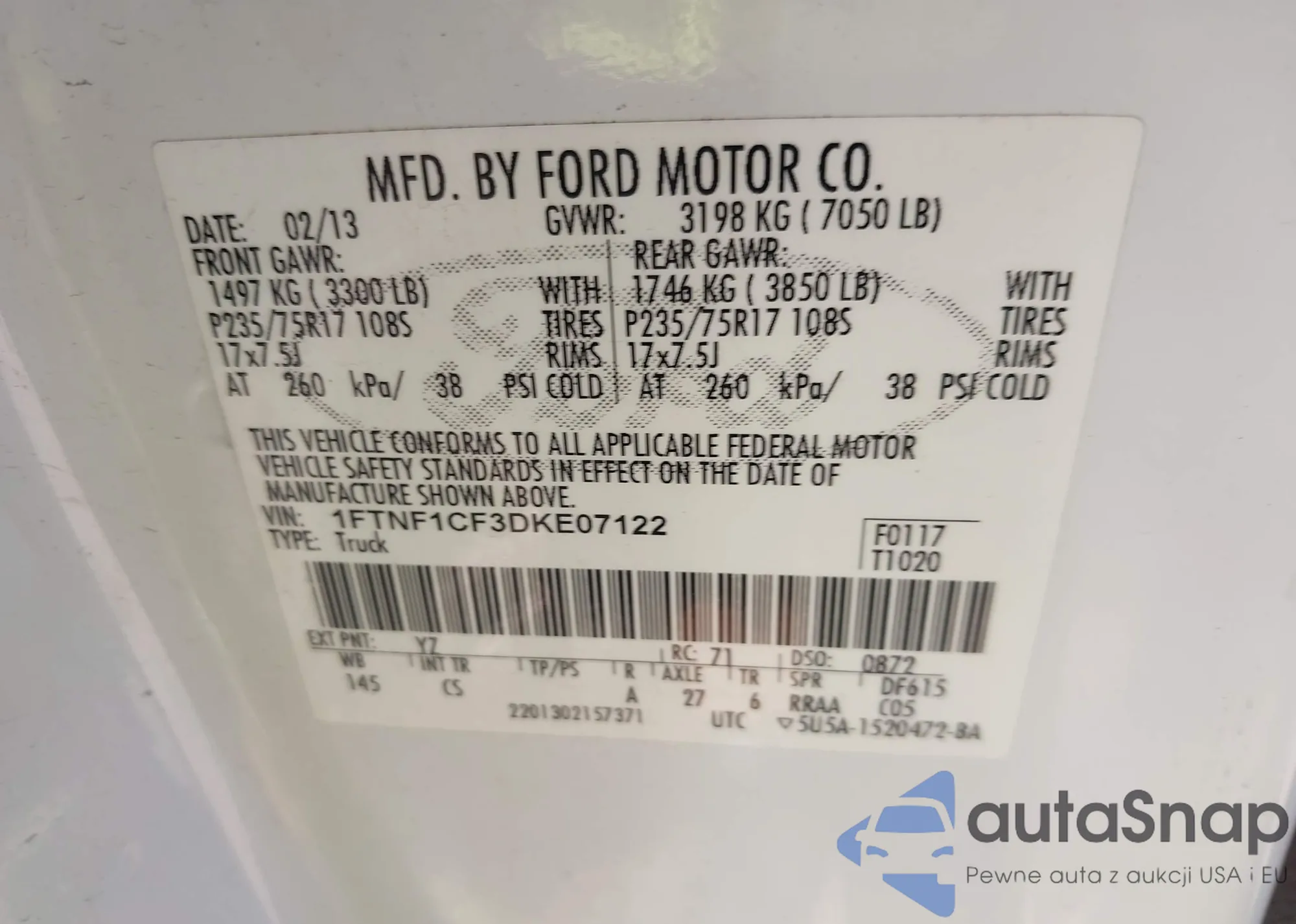 • VIN 1FTNF1CF3DKE07122