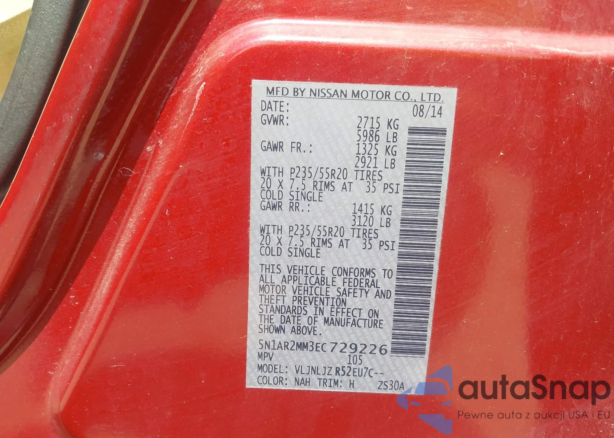 • VIN 5N1AR2MM3EC729226