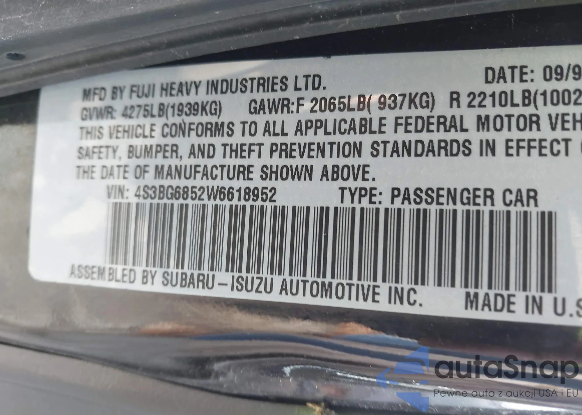 • VIN 4S3BG6852W6618952