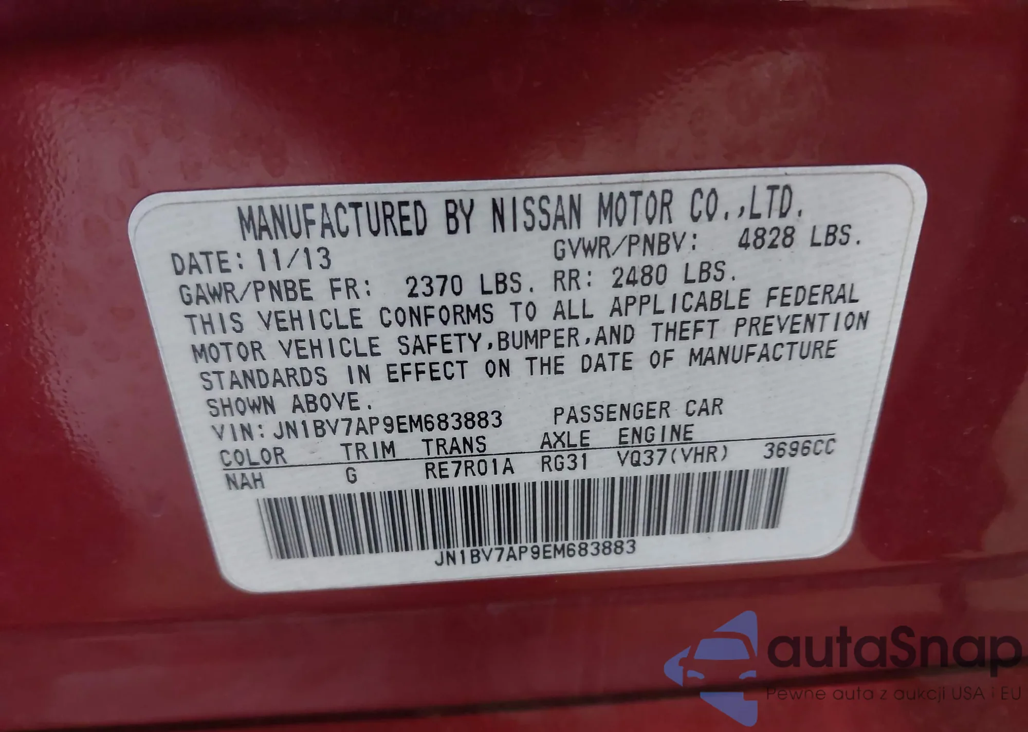 LOT: 42909070 VIN: JN1BV7AP9EM683883