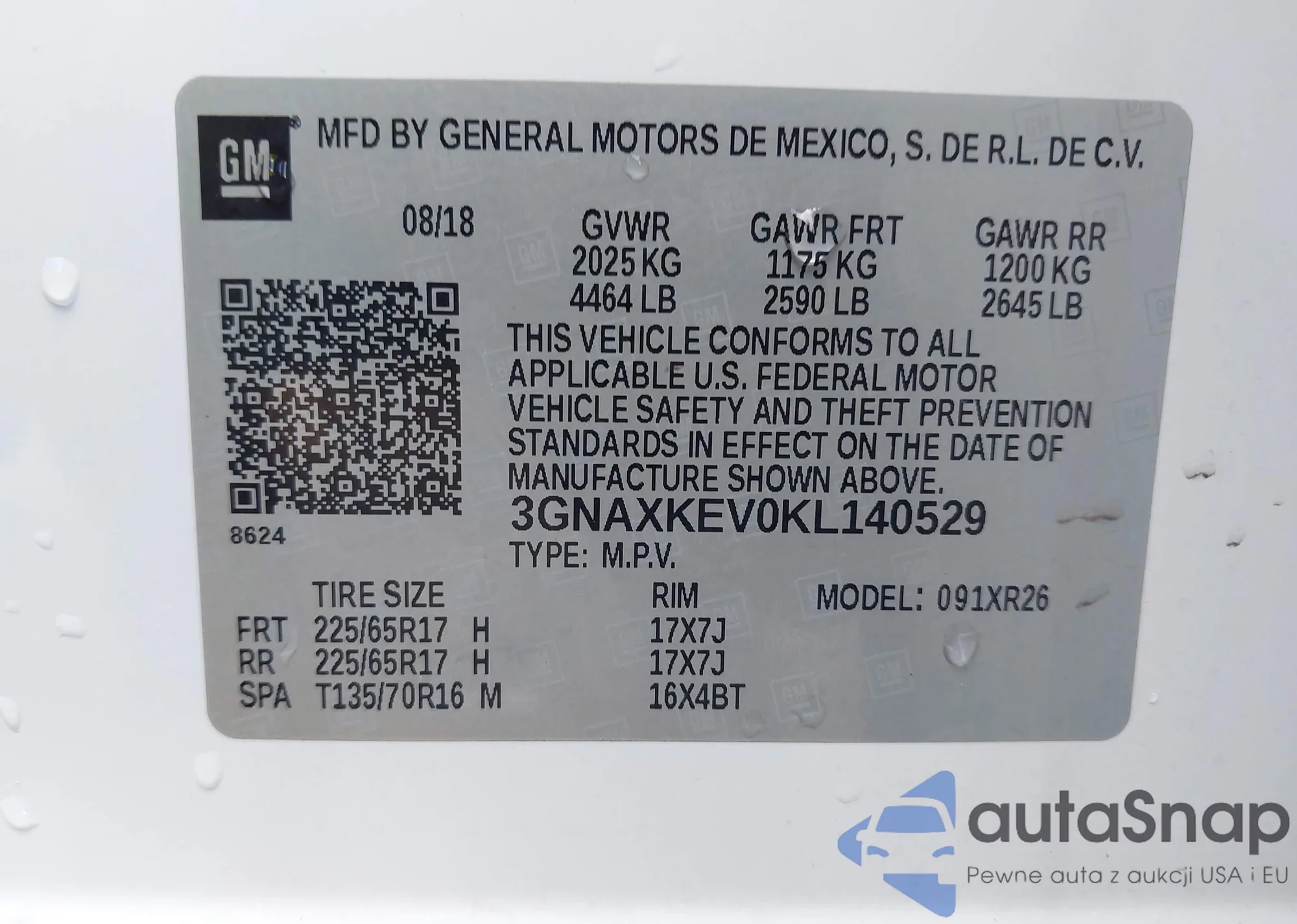 LOT: 43248666 VIN: 3GNAXKEV0KL140529