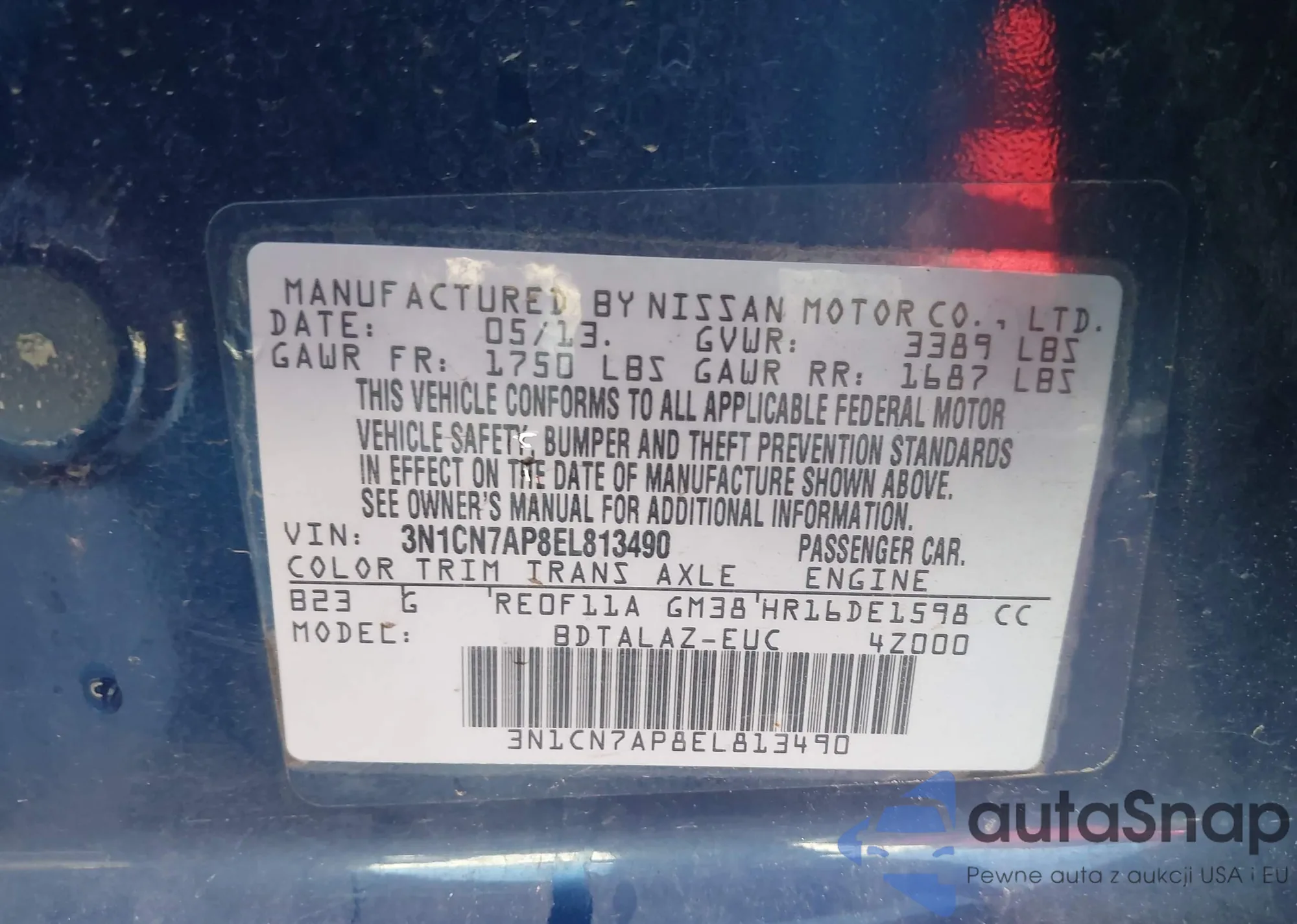 • VIN 3N1CN7AP8EL813490