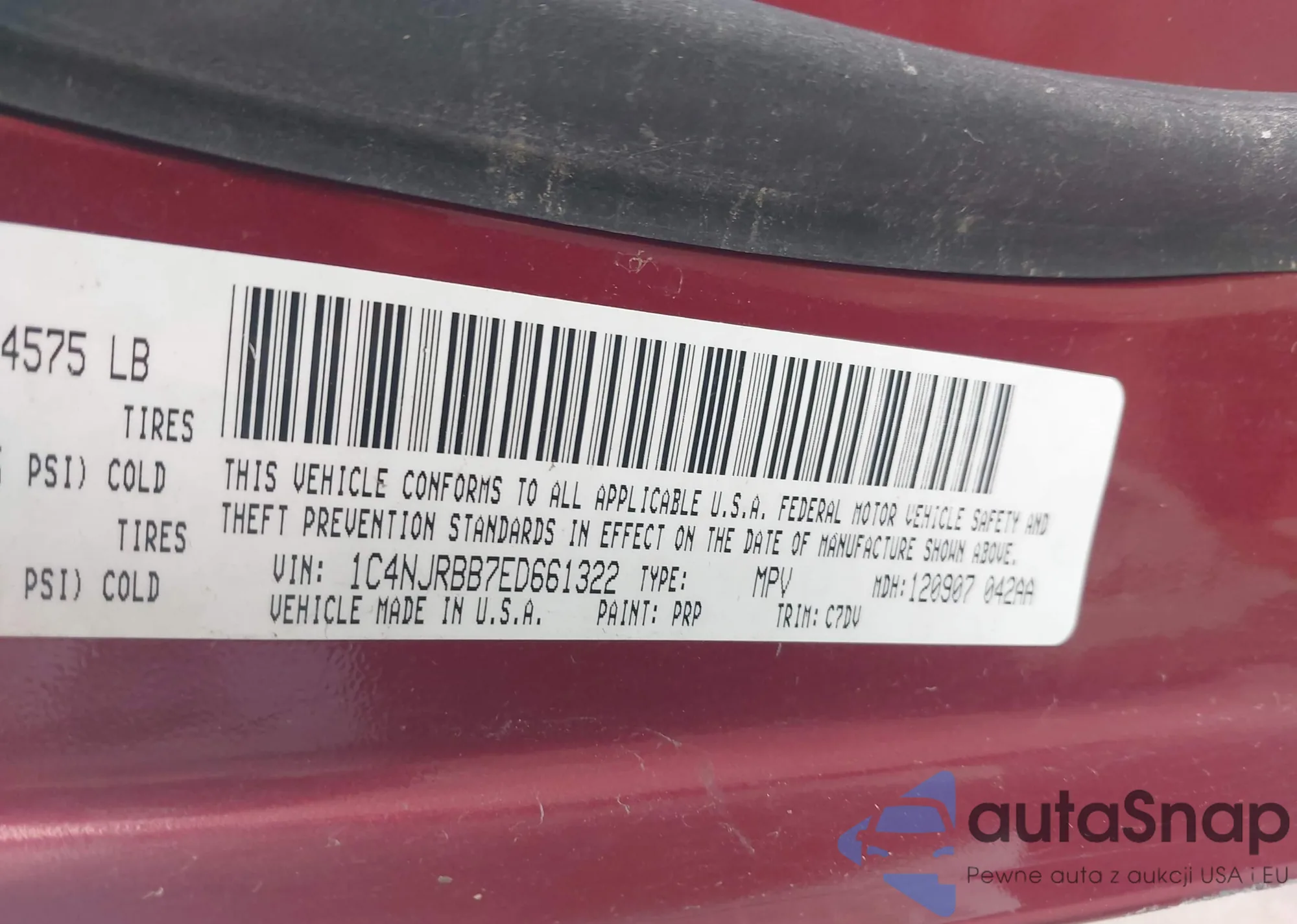 LOT: 43307254 VIN: 1C4NJRBB7ED661322