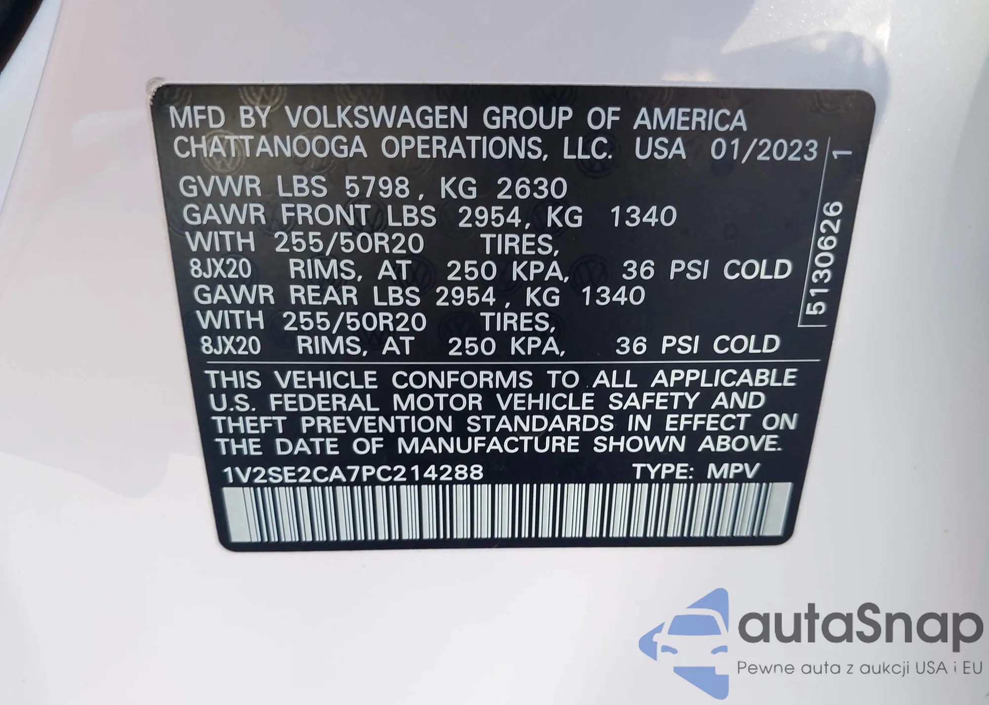 LOT: 42826433 VIN: 1V2SE2CA7PC214288