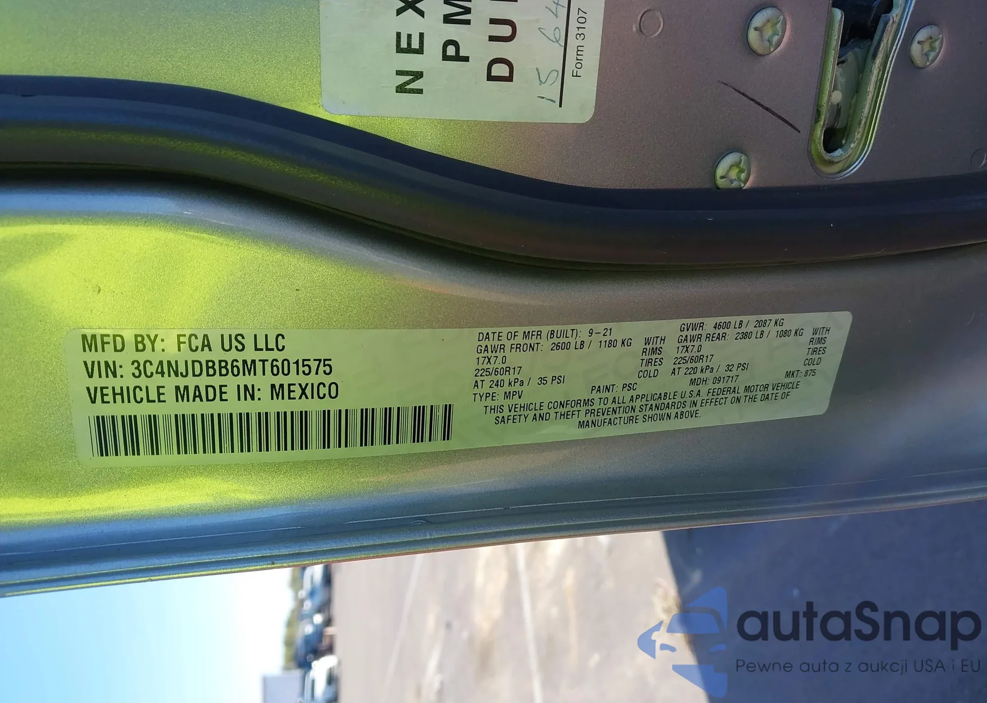 LOT: 43479031 VIN: 3C4NJDBB6MT601575