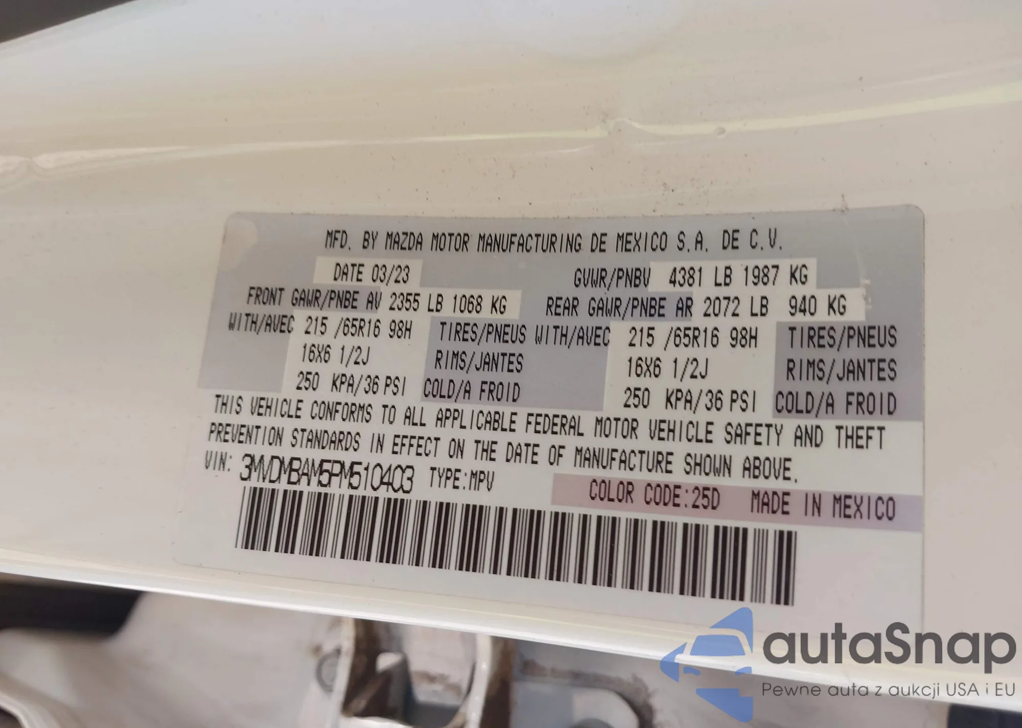 • VIN 3MVDMBAM5PM510403