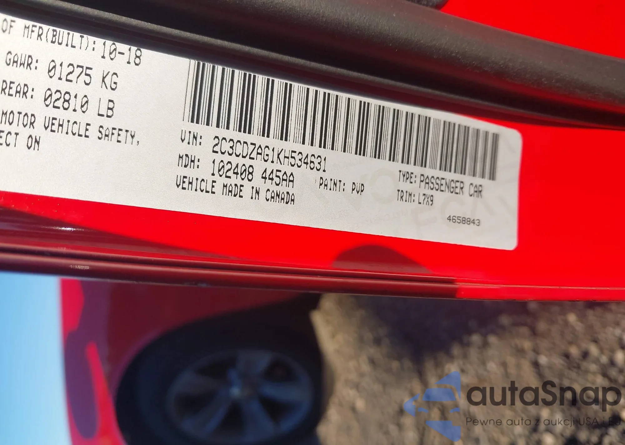 • VIN 2C3CDZAG1KH534631