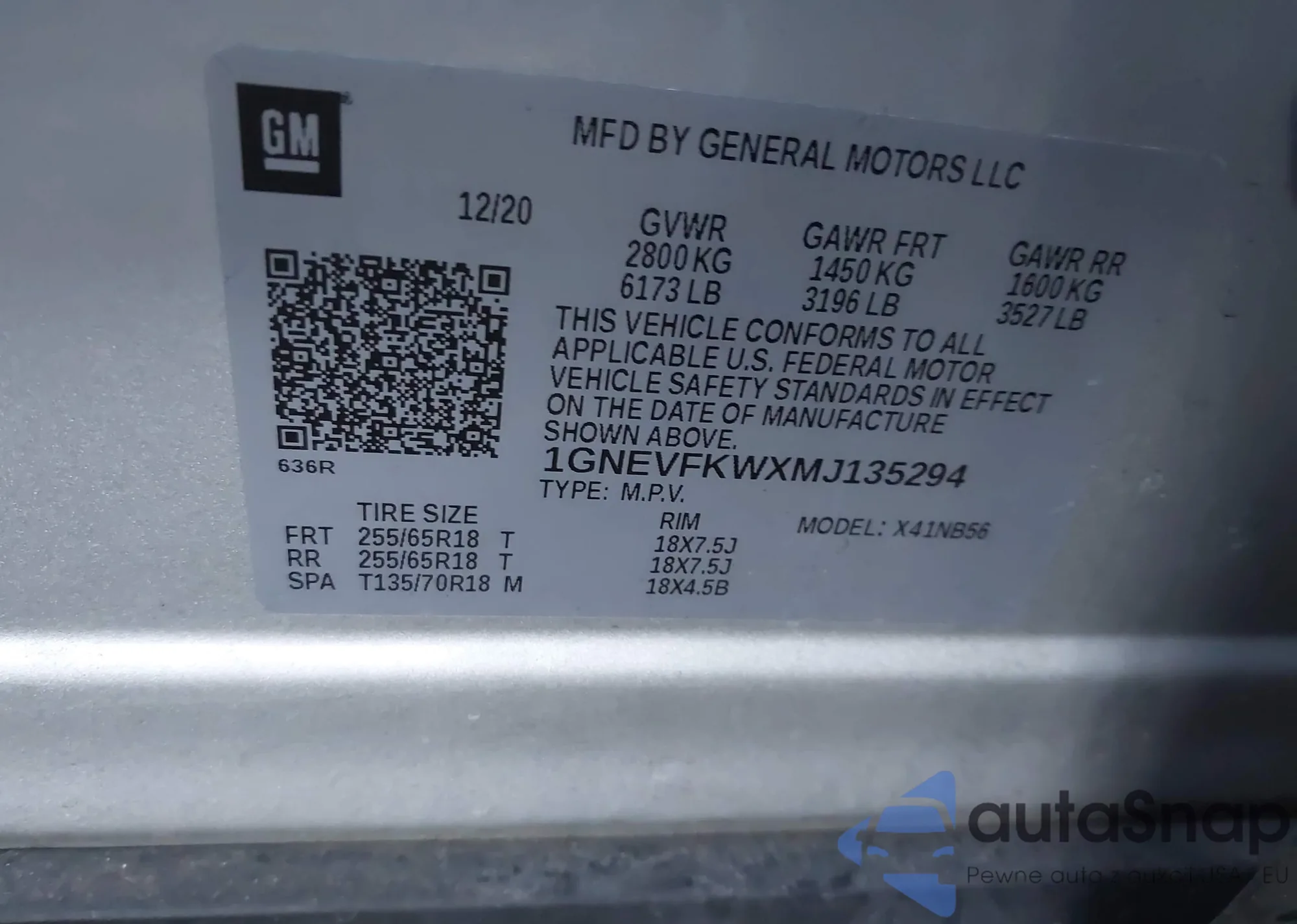 LOT: 43490008 VIN: 1GNEVFKWXMJ135294