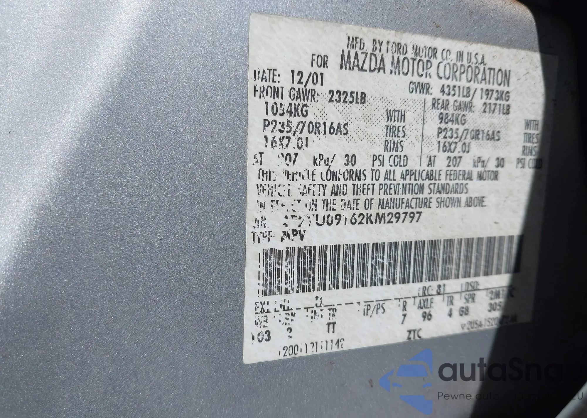 LOT: 43056384 VIN: JM1DE1KY5D0165706