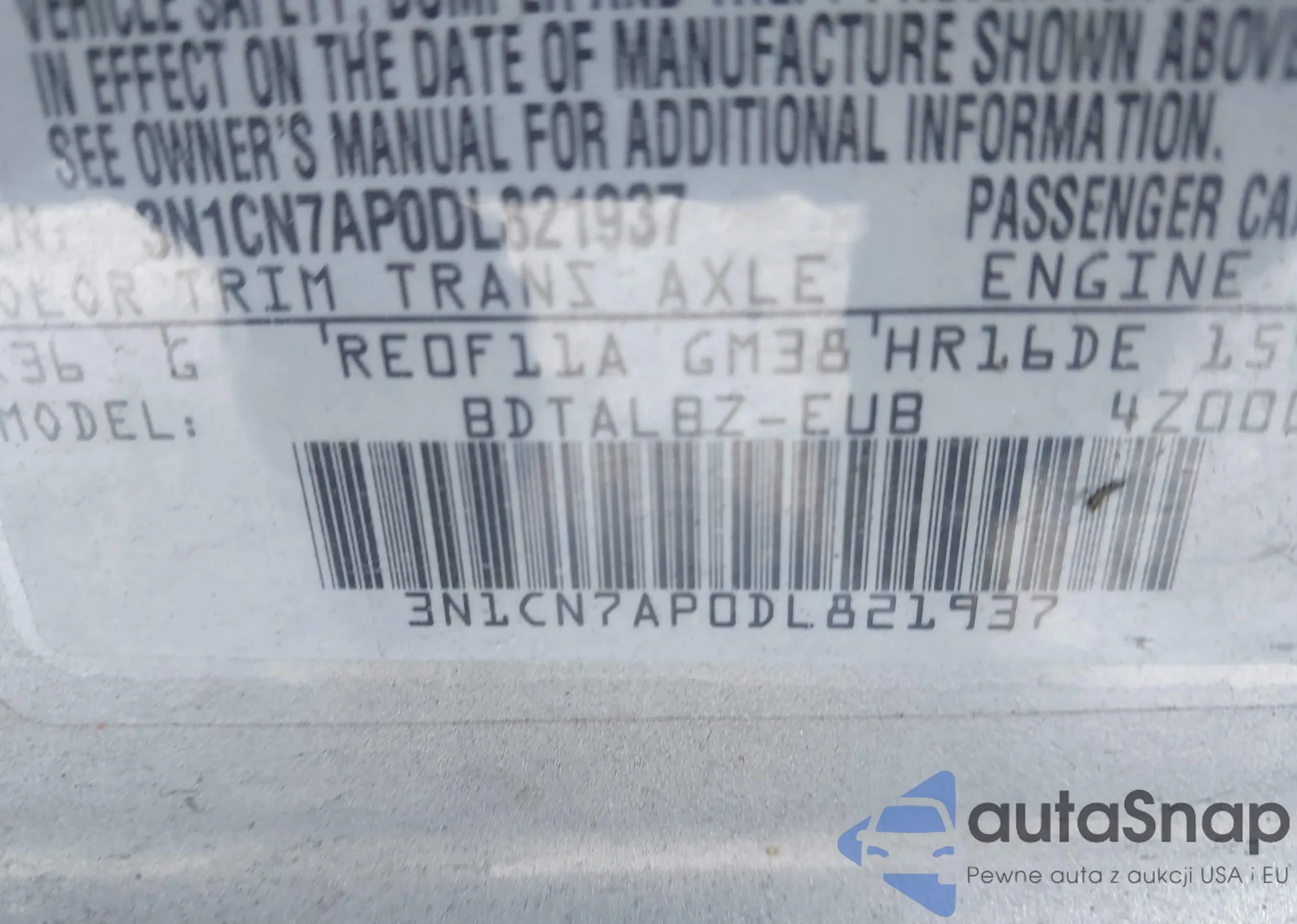 • VIN 3N1CN7AP0DL821937