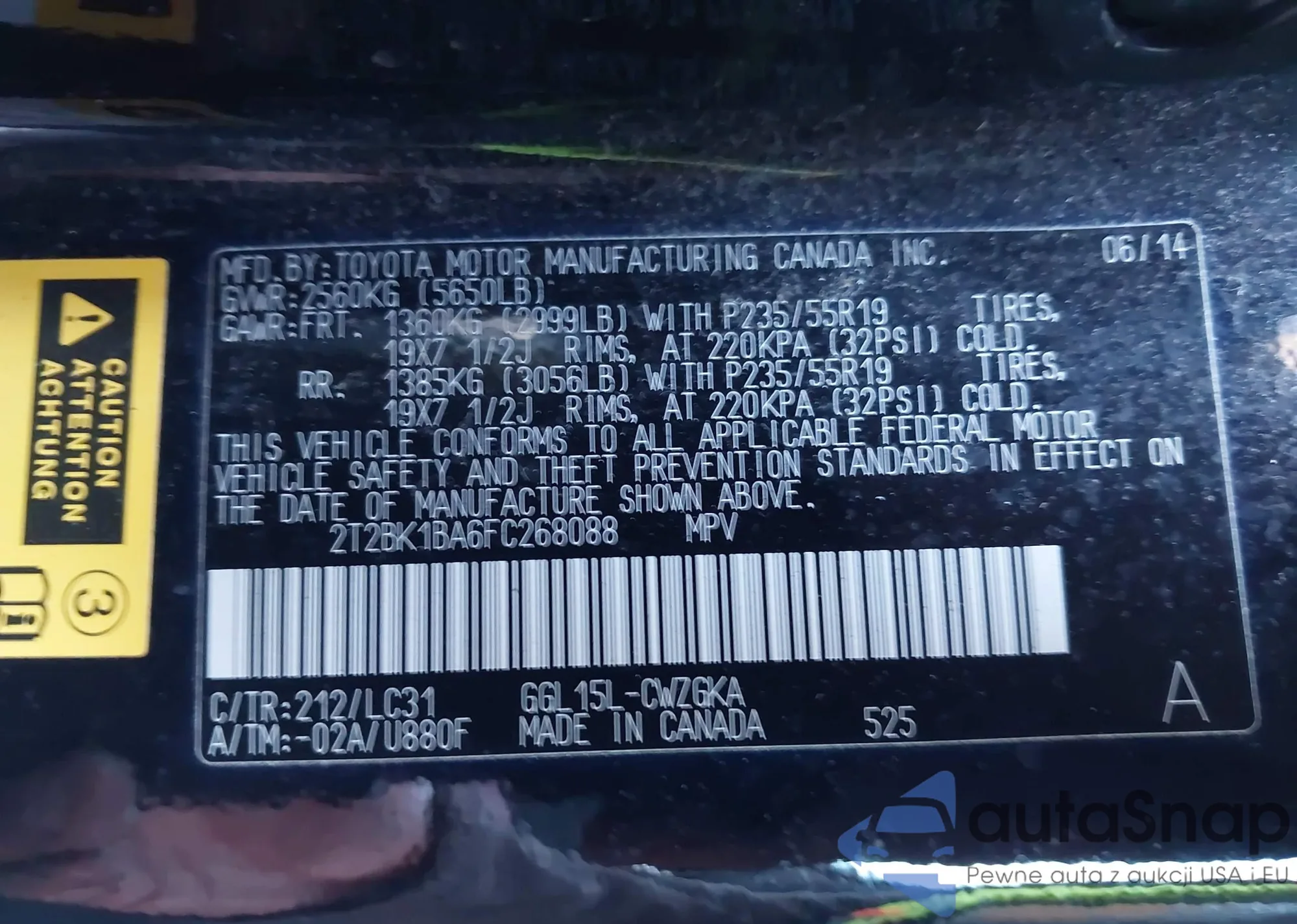 • VIN 2T2BK1BA6FC268088
