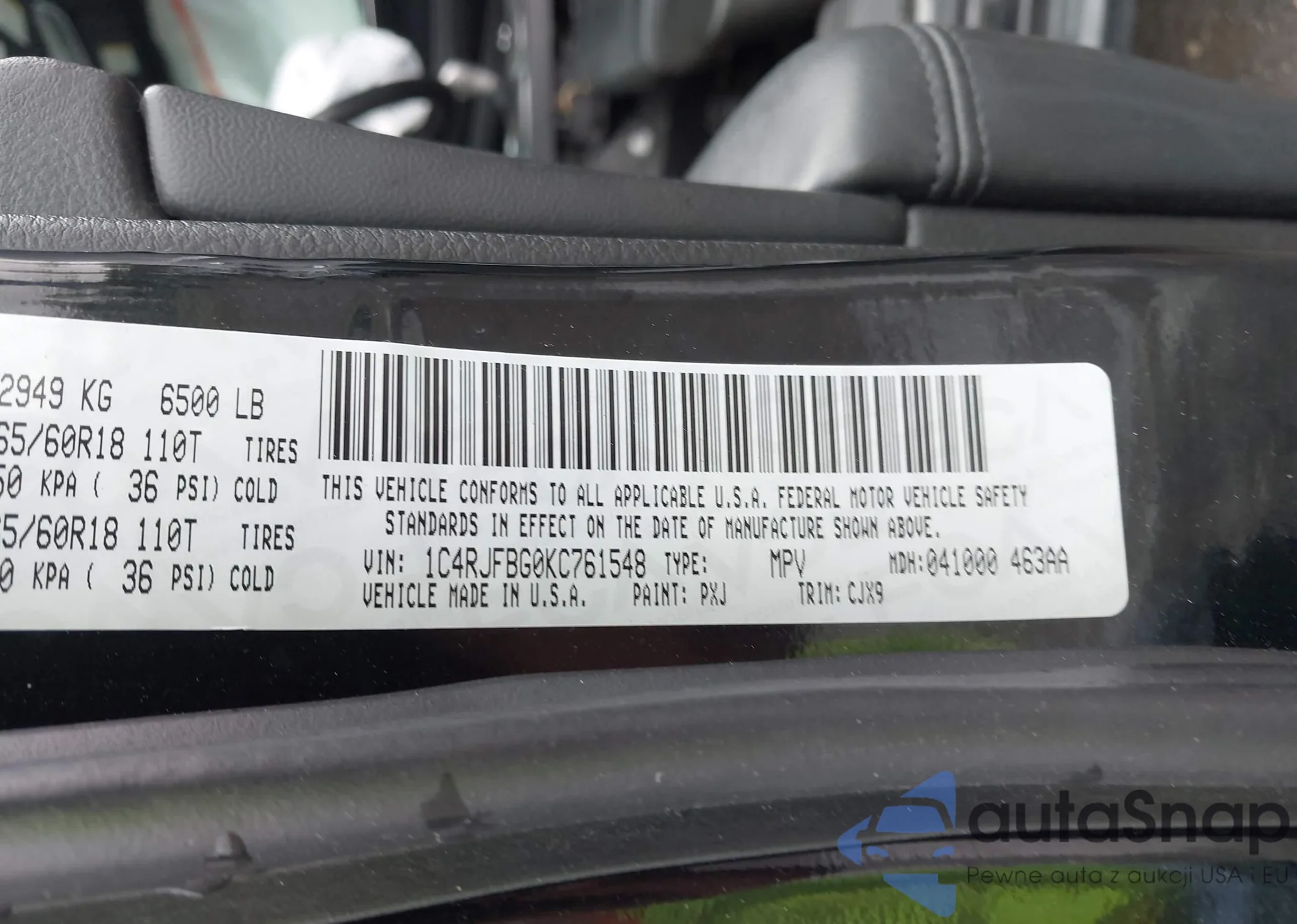 • VIN 1C4RJFBG0KC761548