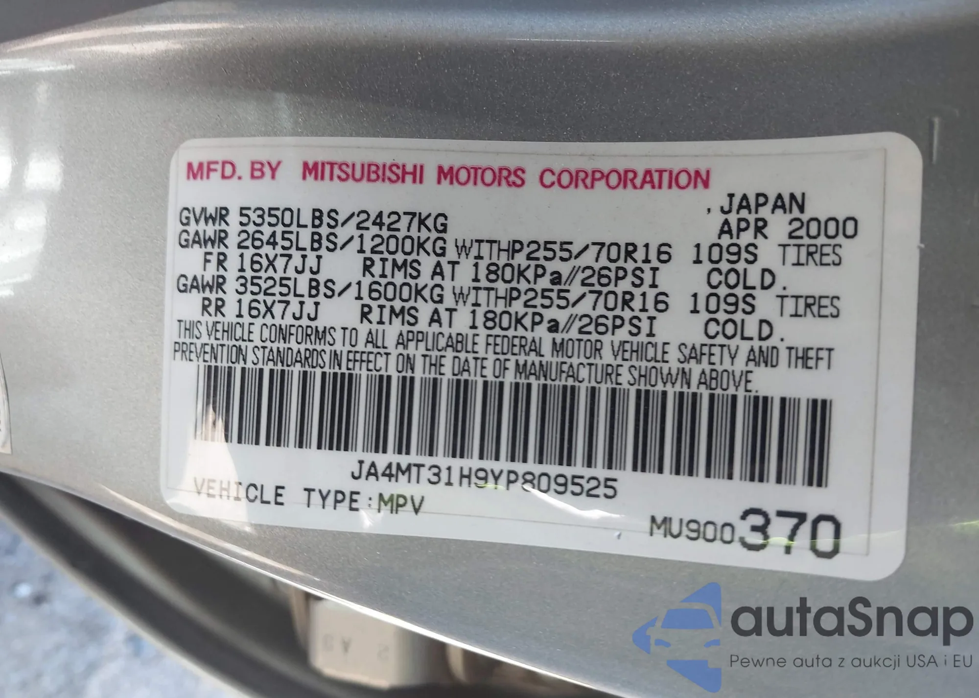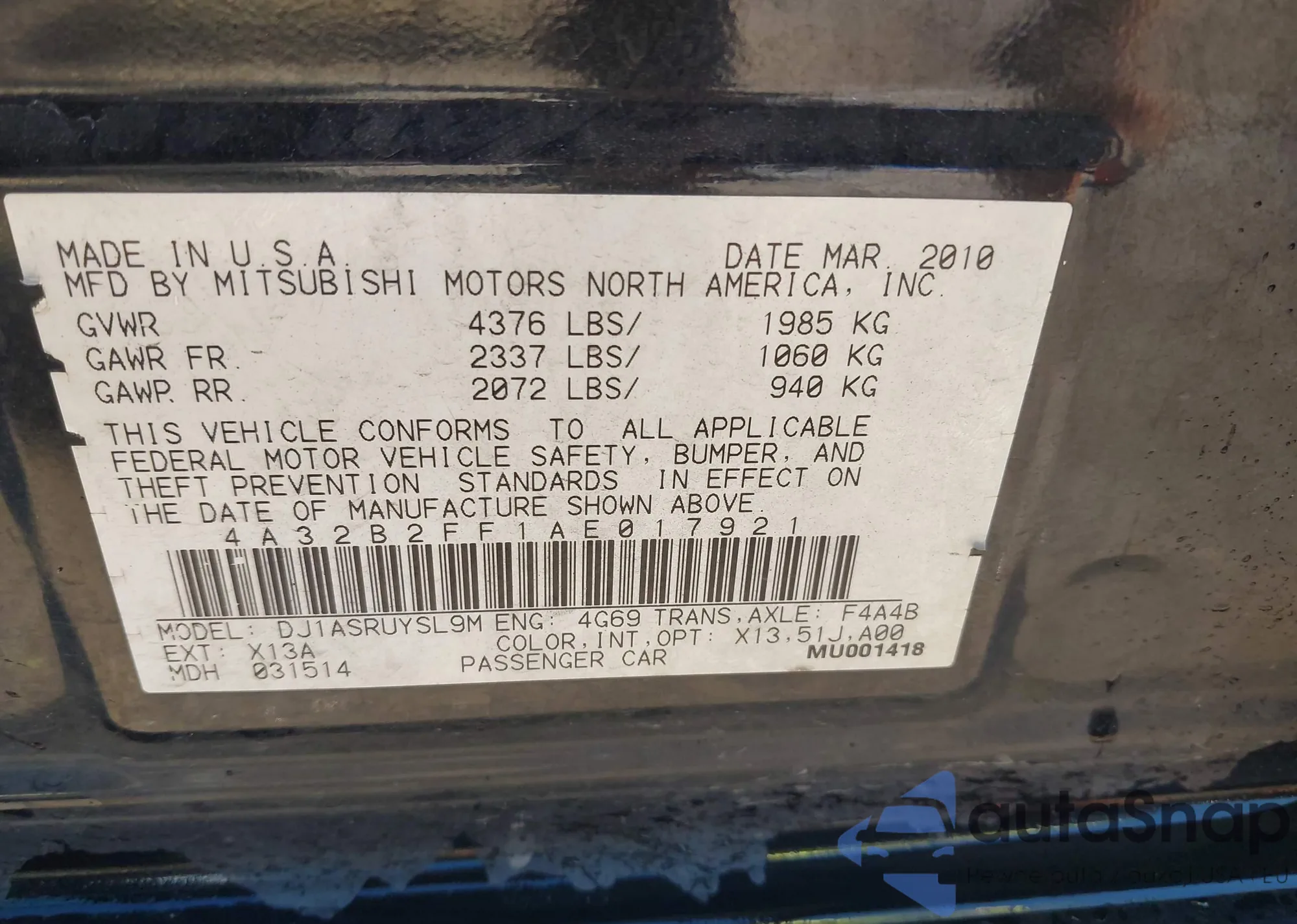 LOT: 43438872 VIN: 4A32B2FF1AE017921