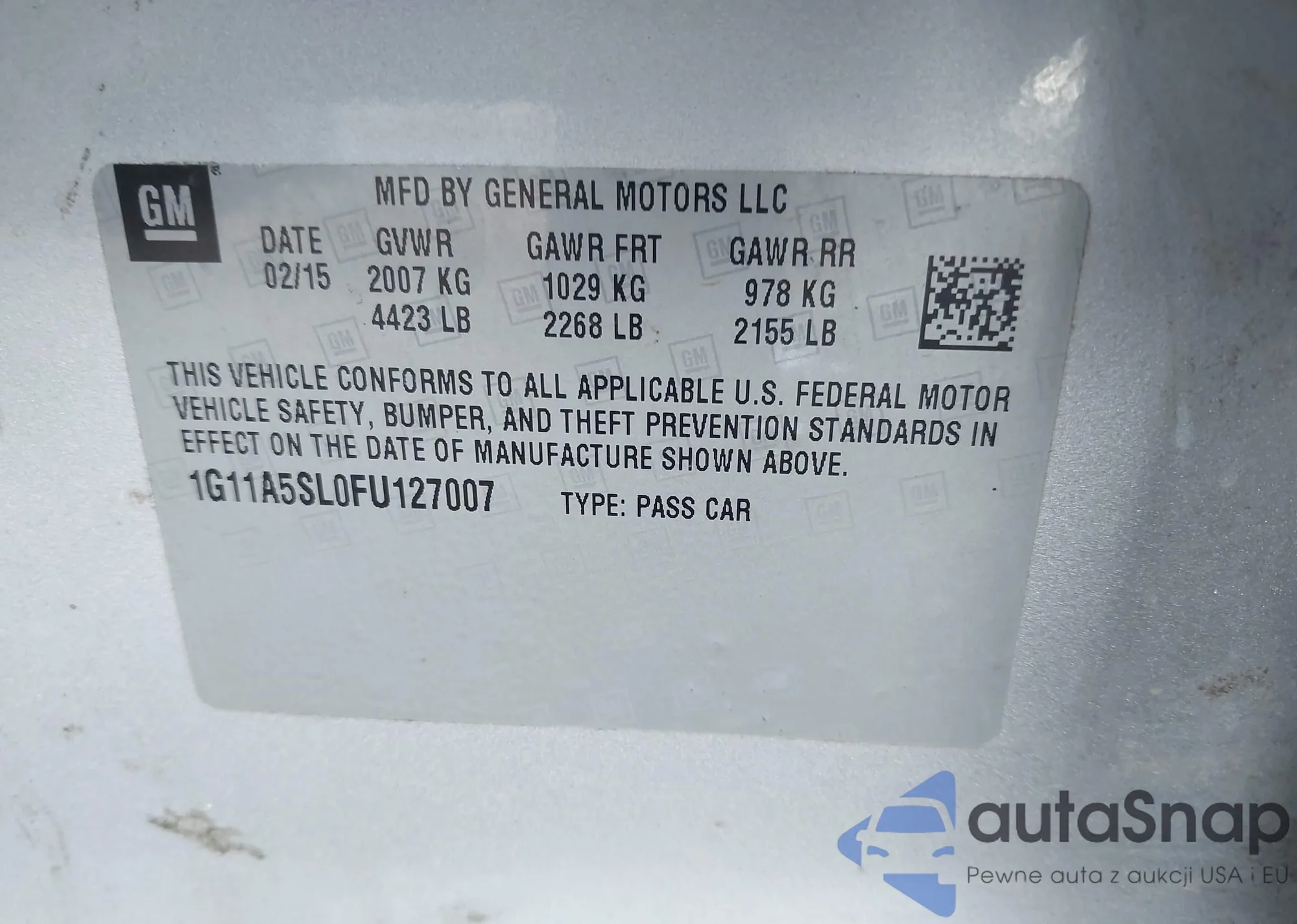 LOT: 43566996 VIN: WAUBGAFL4AA143568