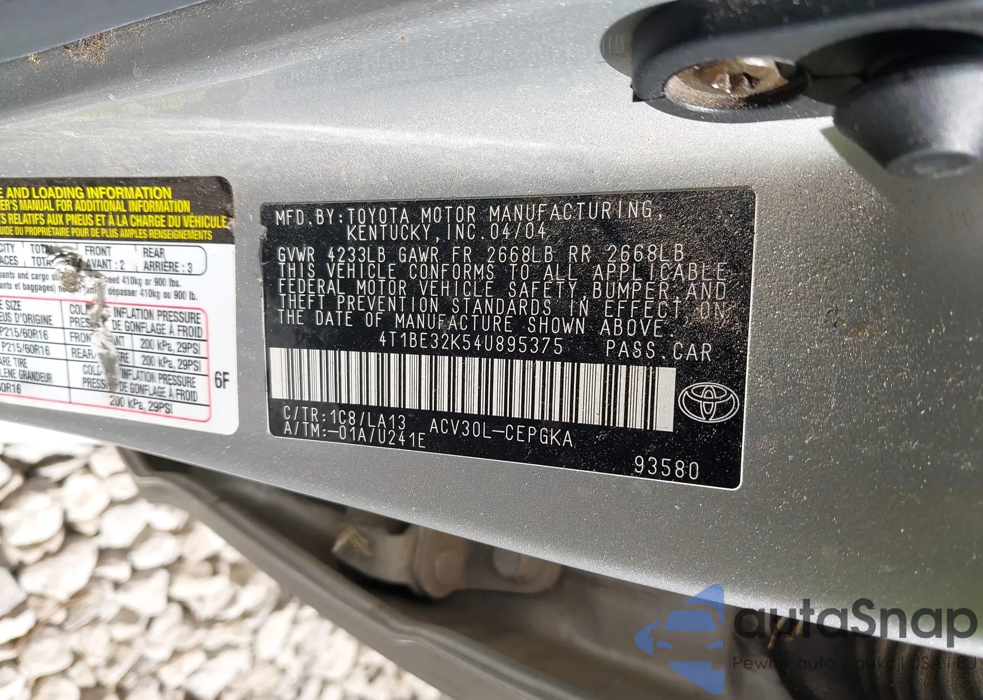 • VIN 4T1BE32K54U895375