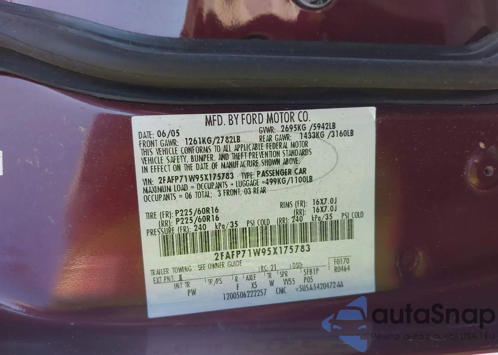 • VIN 2FAFP71W95X175783