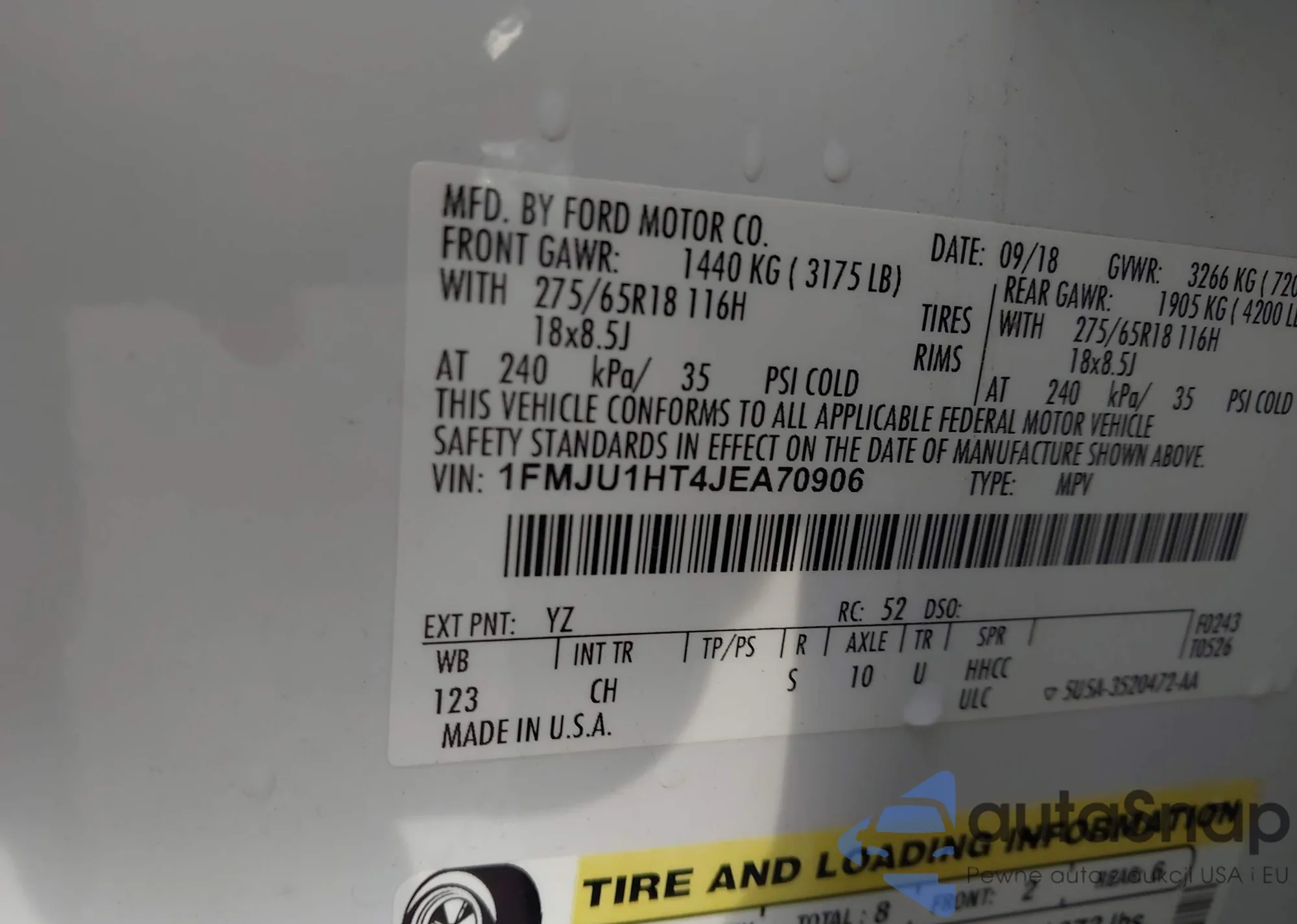 LOT: 43231561 VIN: 1FMCU0GD4JUA75199