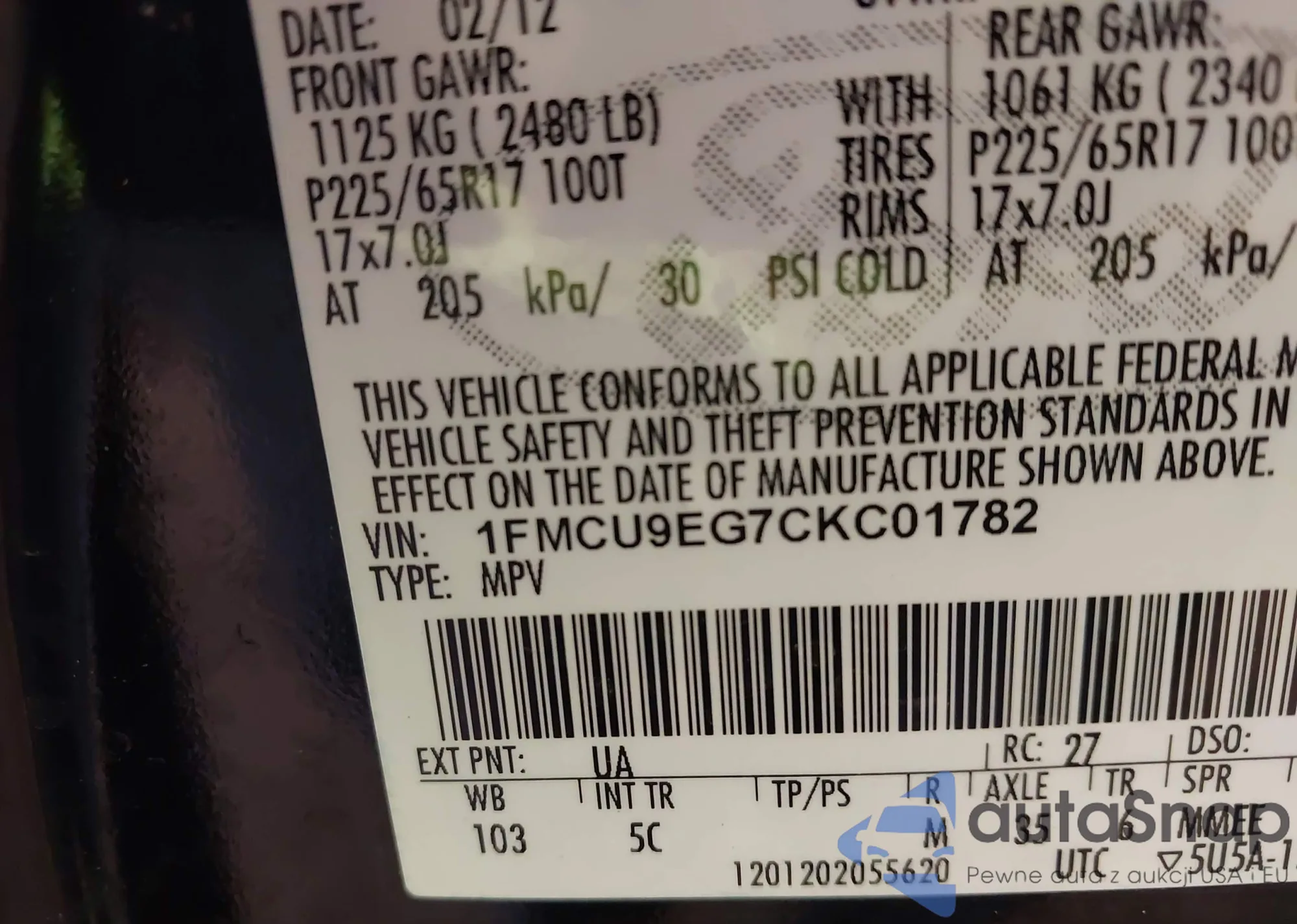 • VIN 1FMCU9EG7CKC01782