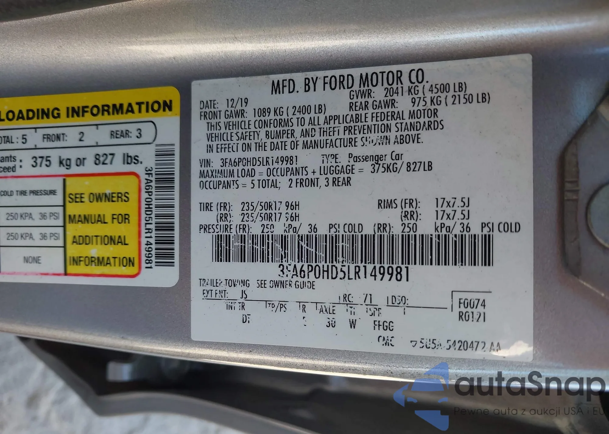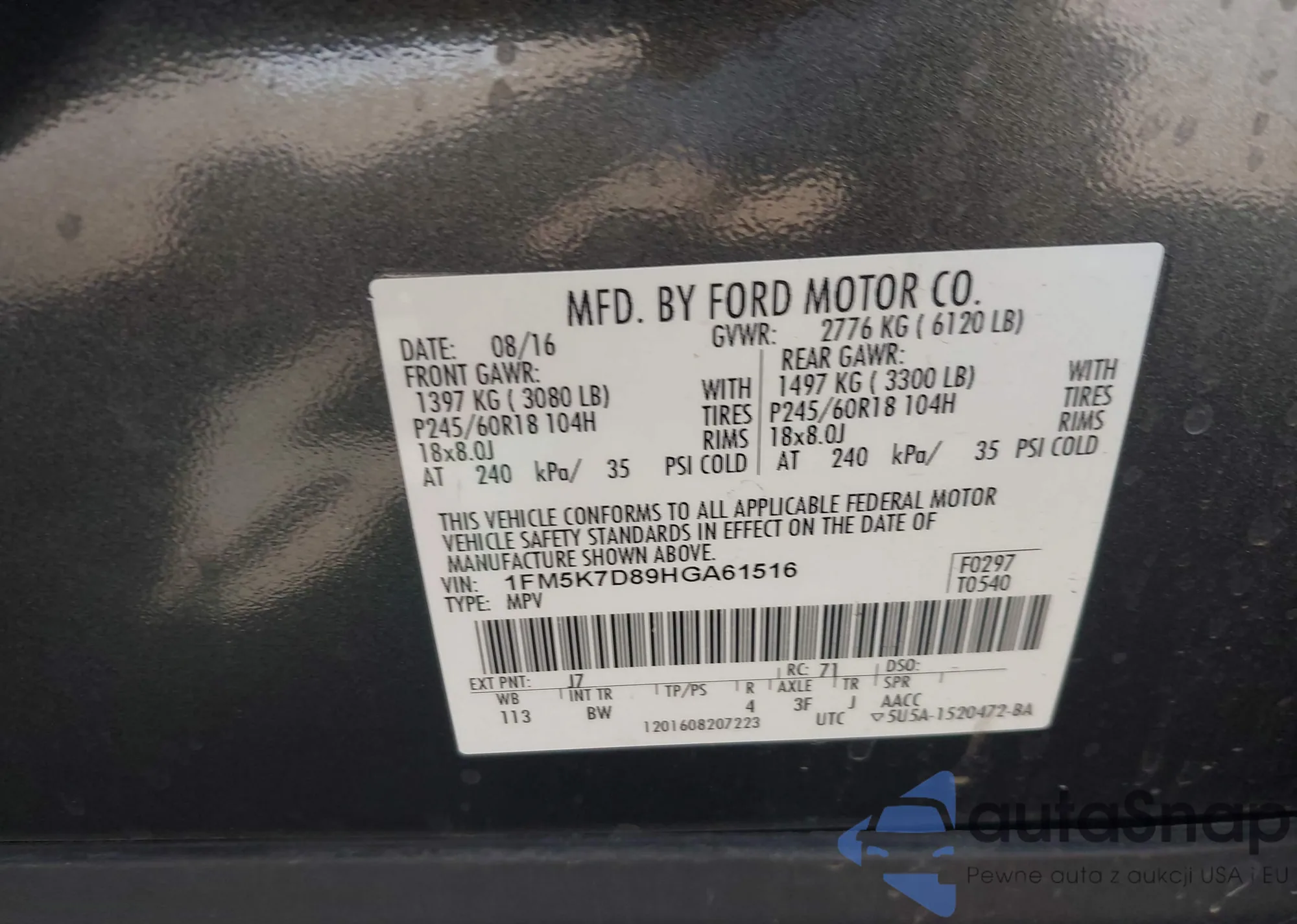 LOT: 43316501 VIN: 3FADP4BJ1HM117207