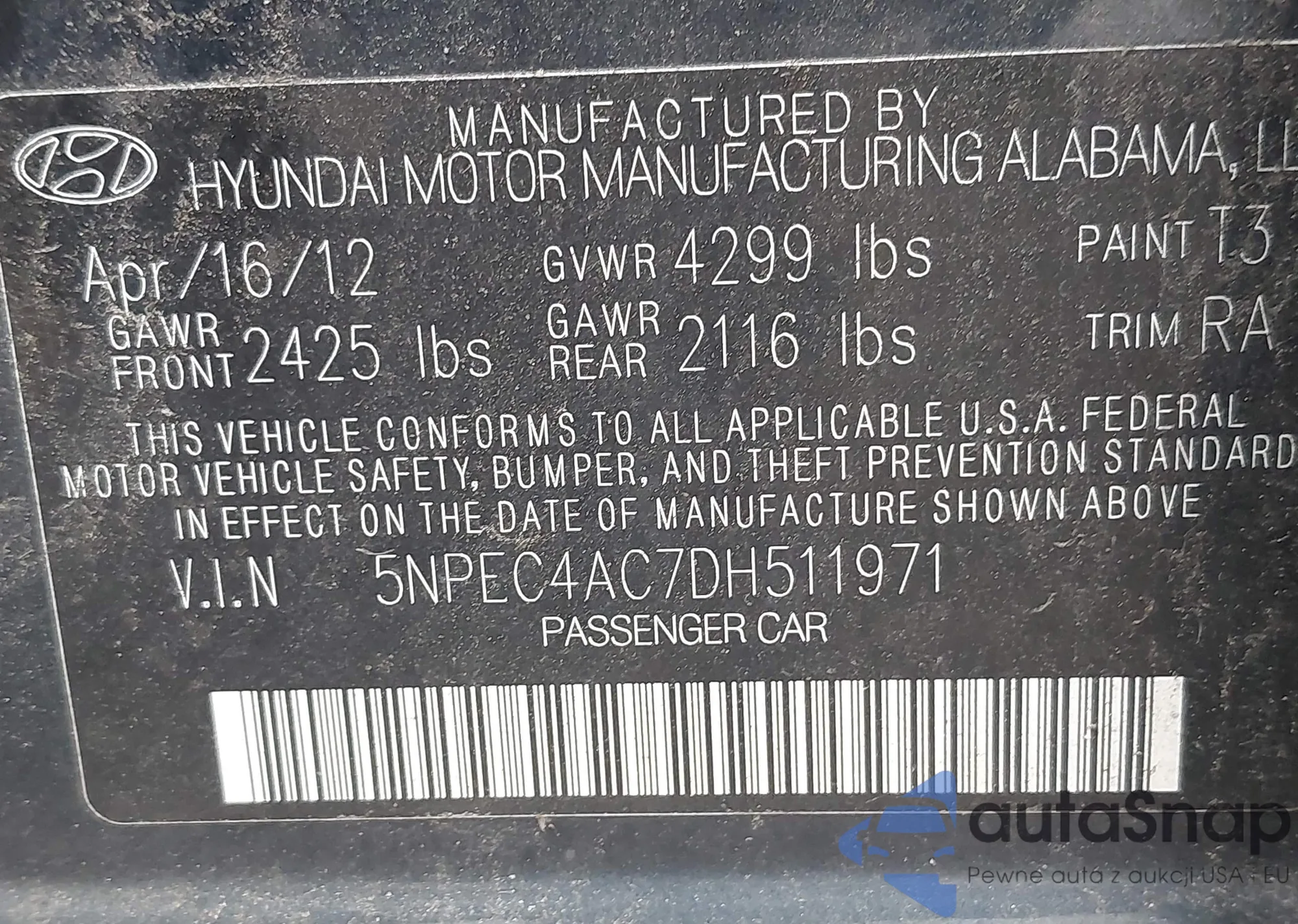 • VIN 5NPE24AFXGH356267