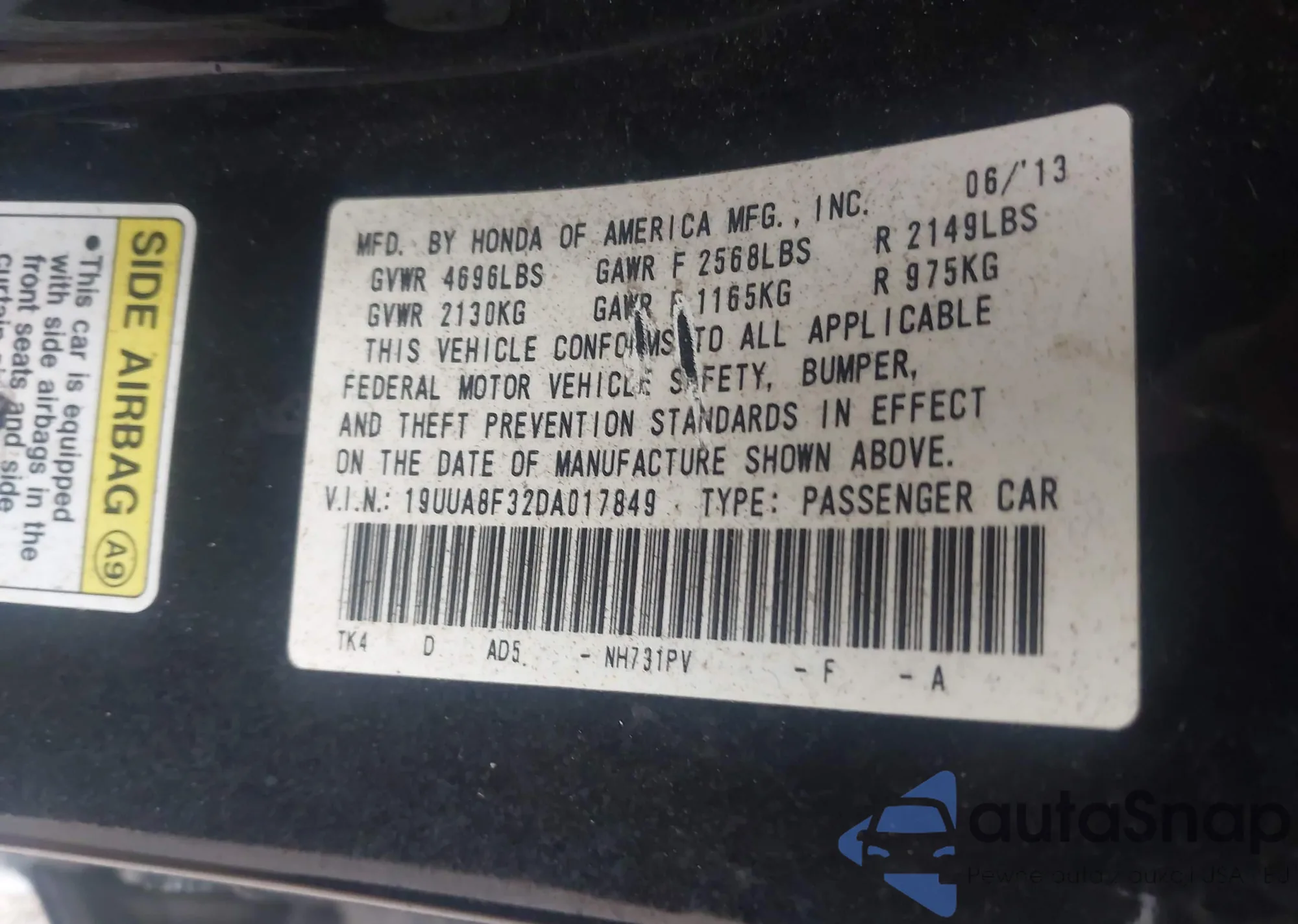 • VIN 19UUA8F32DA017849