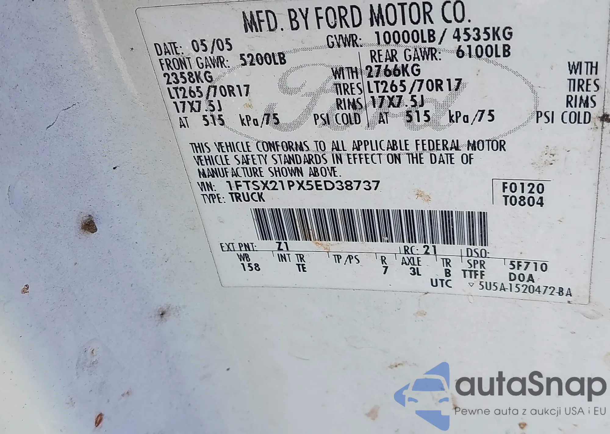 • VIN 1FTSX21PX5ED38737