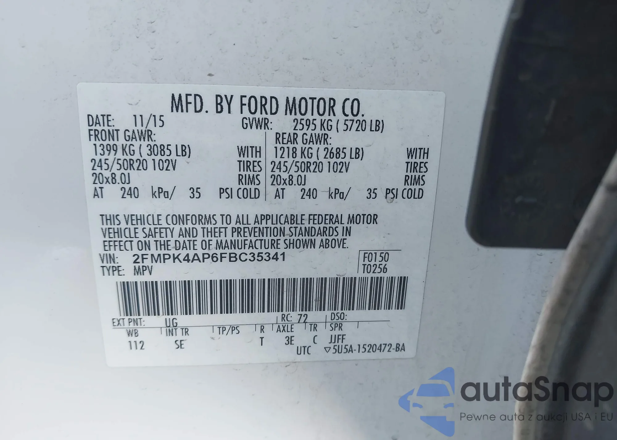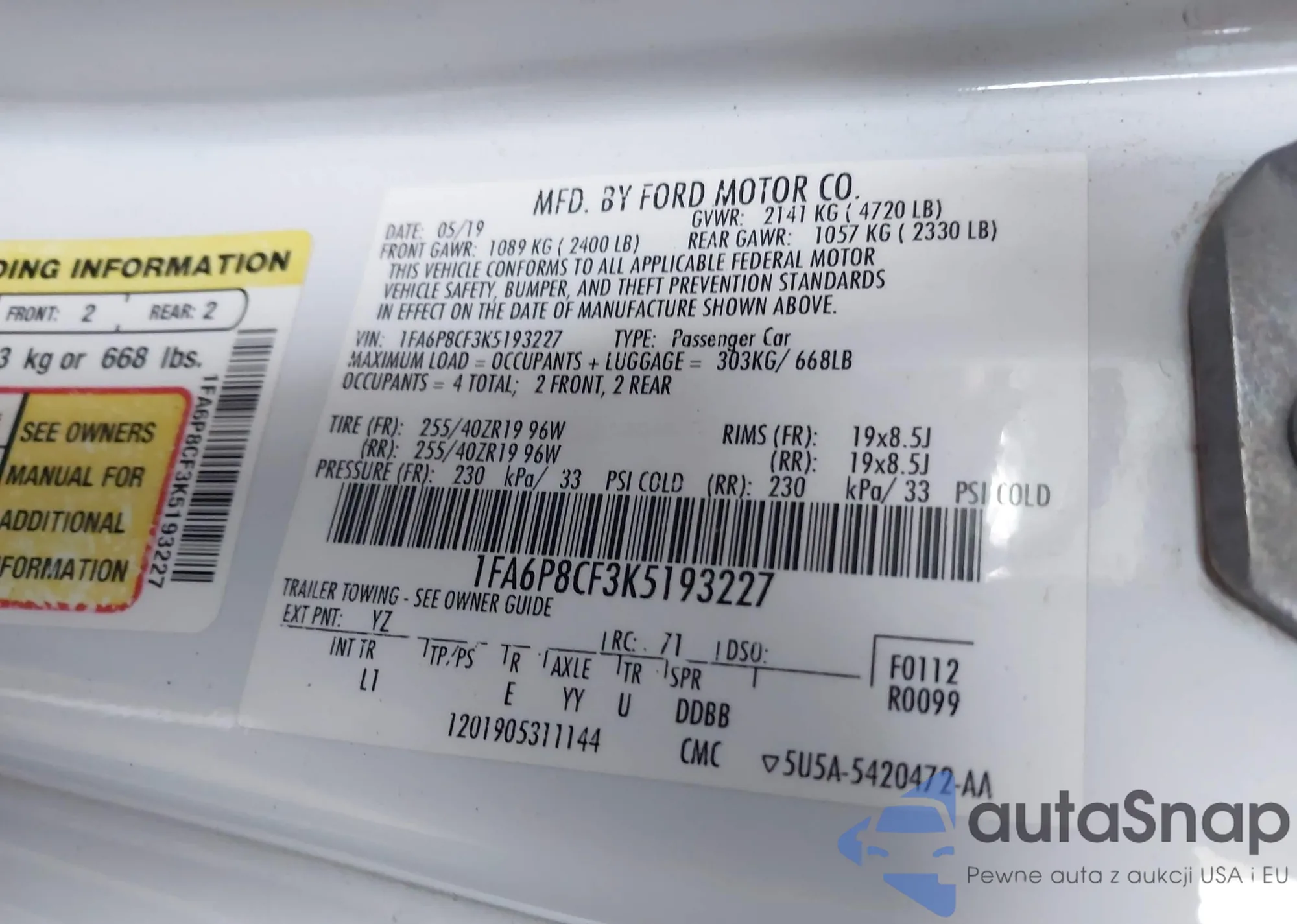 • VIN 1FA6P8CF3K5193227