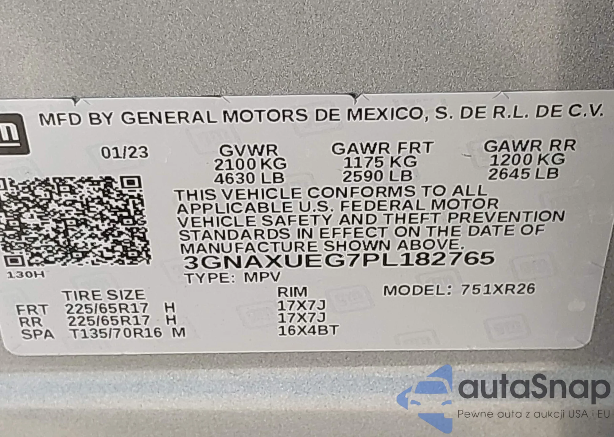 • VIN 3GNAXUEG7PL182765