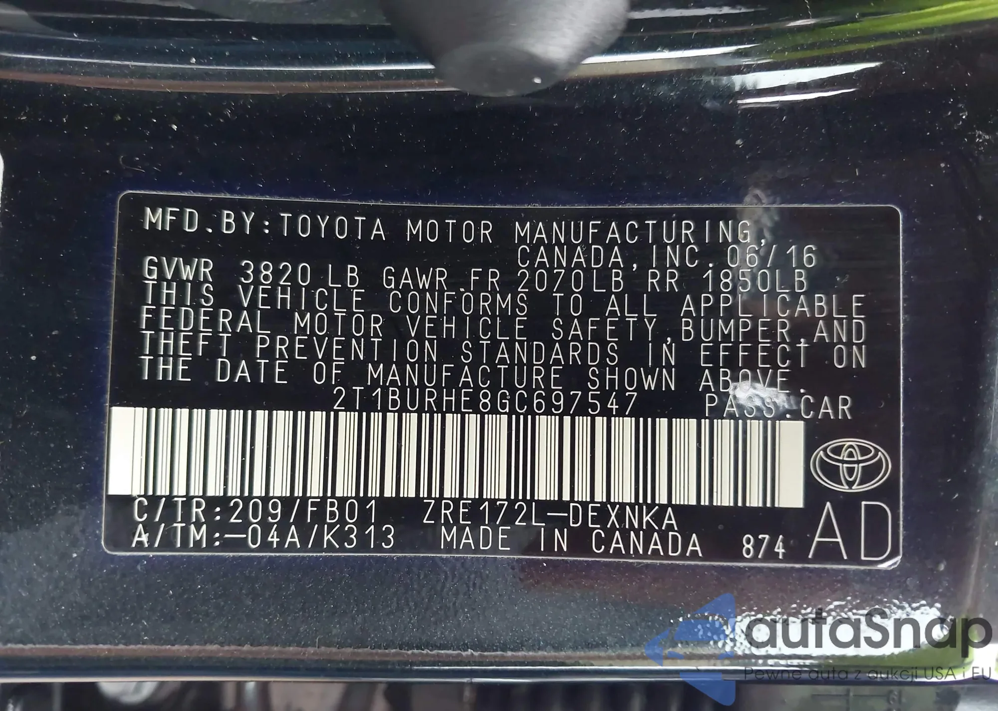 • VIN 2T1BURHE8GC697547