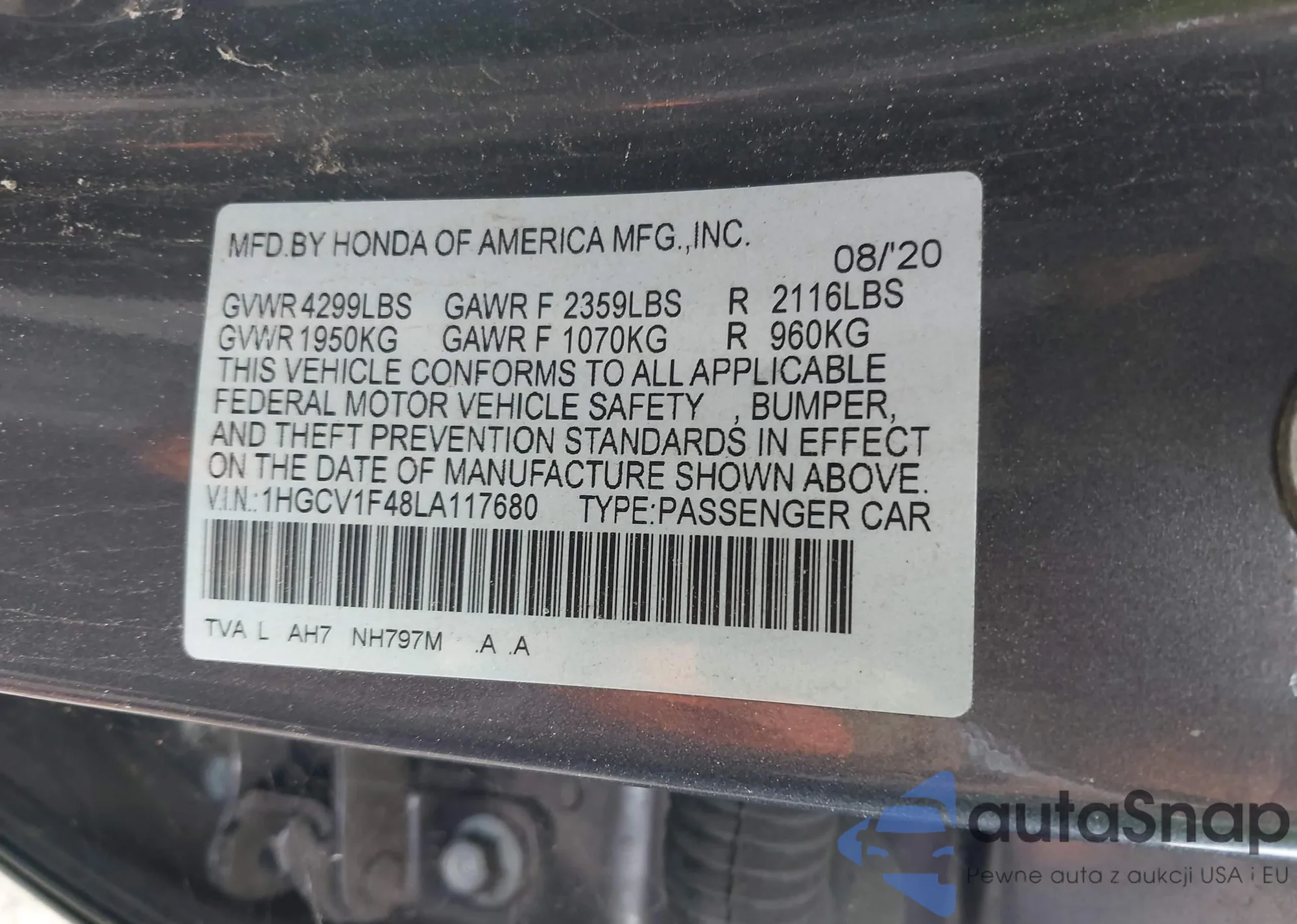 • VIN 1HGCV1F48LA117680