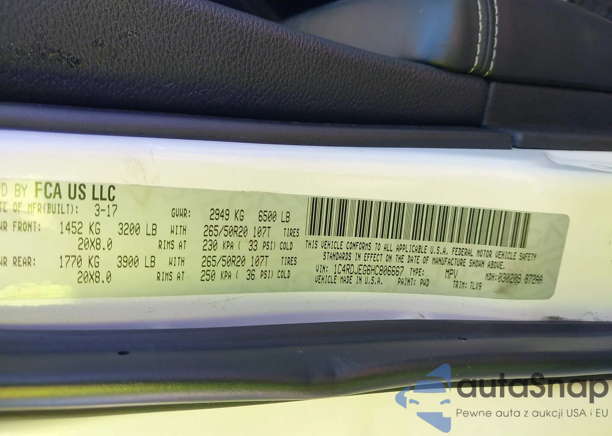 • VIN 1C4RDJEG6HC806667
