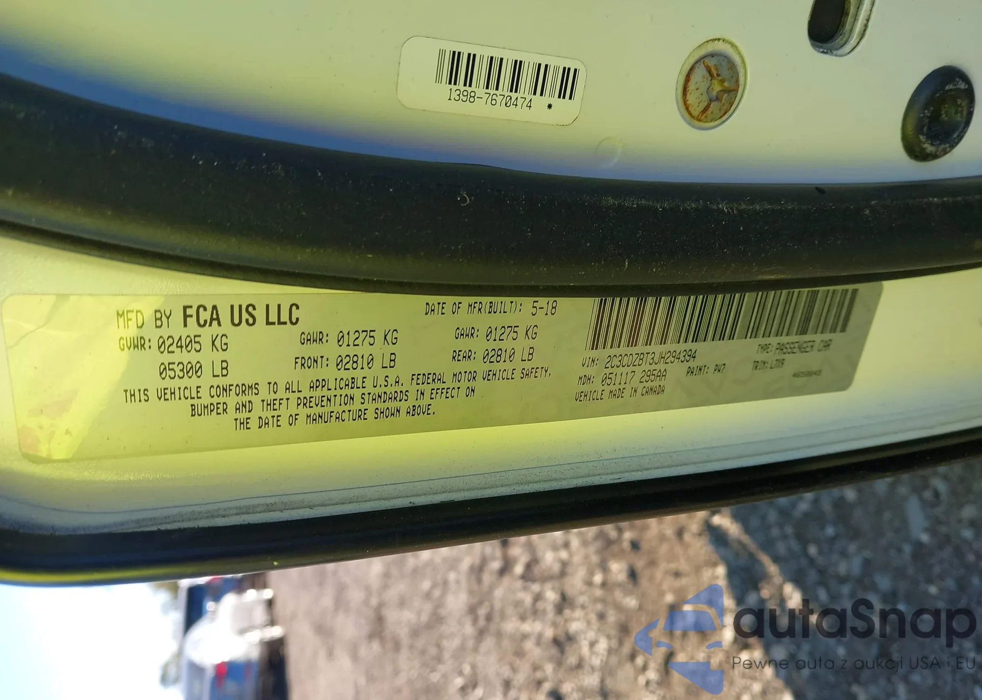 • VIN 2C3CDZBT3JH294394