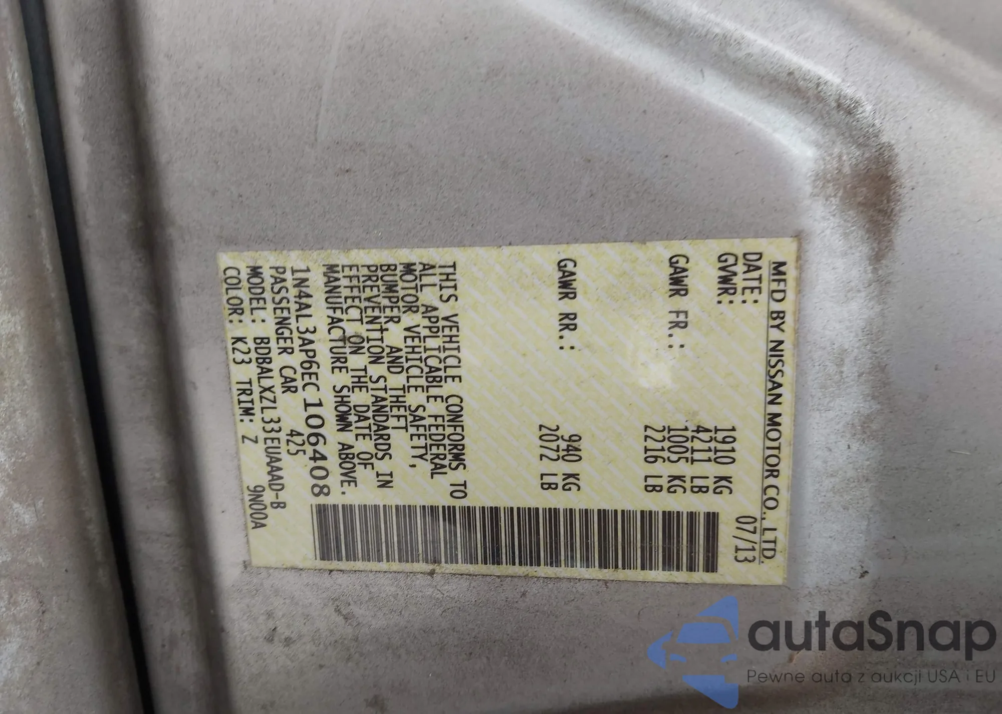 LOT: 43093144 VIN: 1N4AL3AP6EC106408