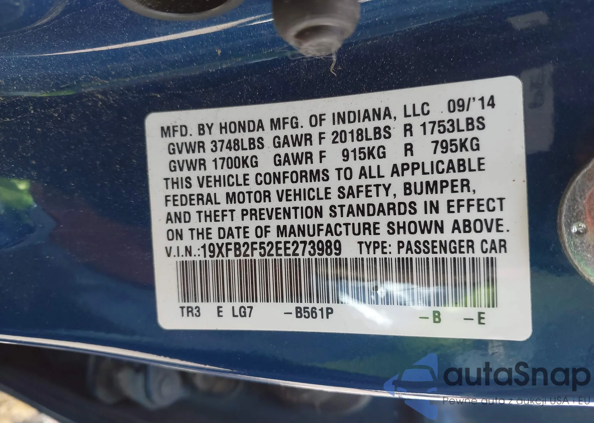 • VIN 19XFB2F52EE273989