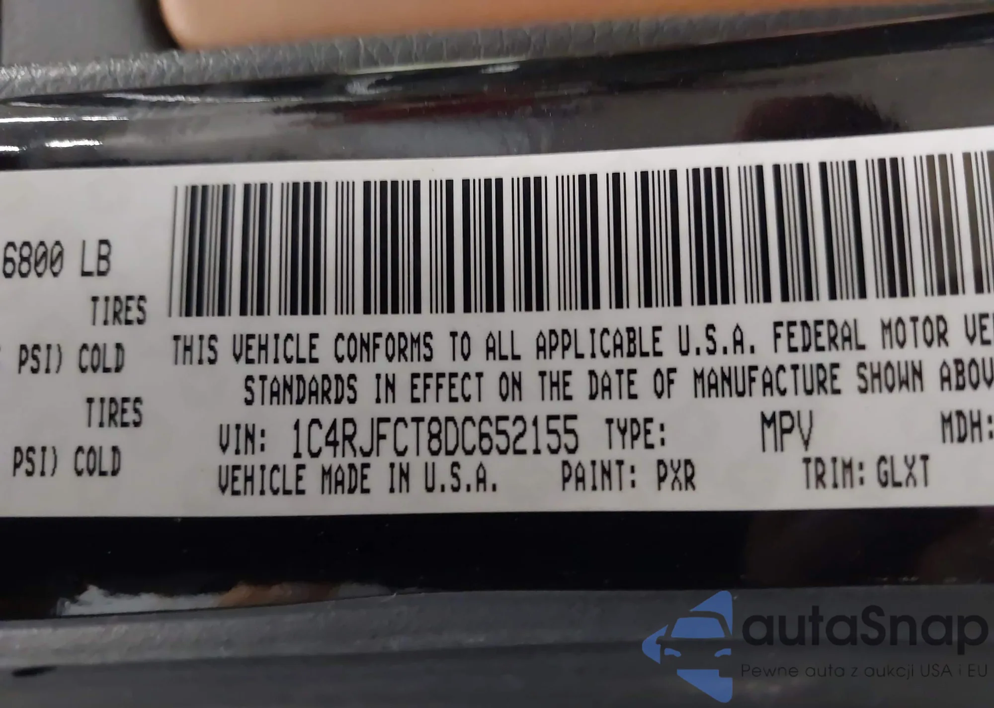 • VIN 1C4RJFCT8DC652155