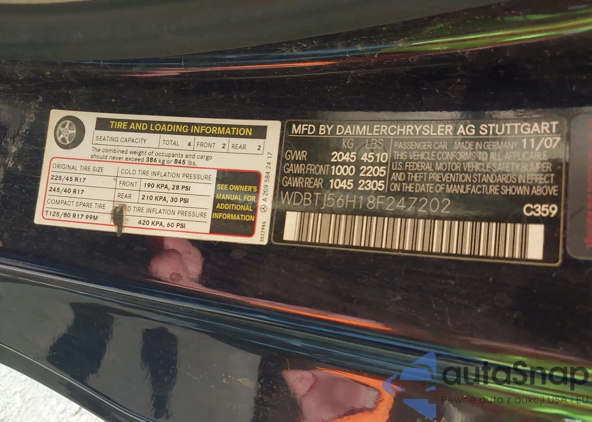 LOT: 43583407 VIN: WDBTJ56H18F247202