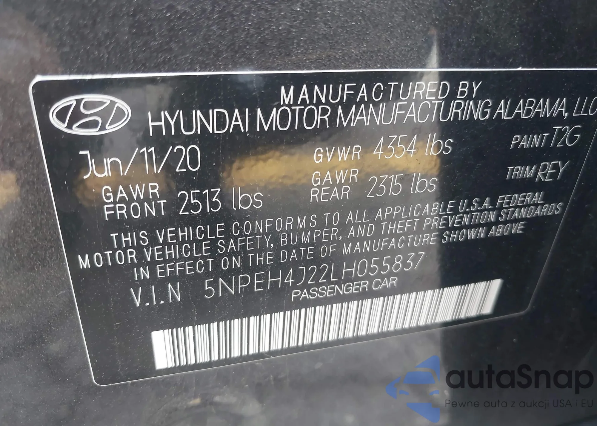 LOT: 43229881 VIN: 5NPEH4J22LH055837
